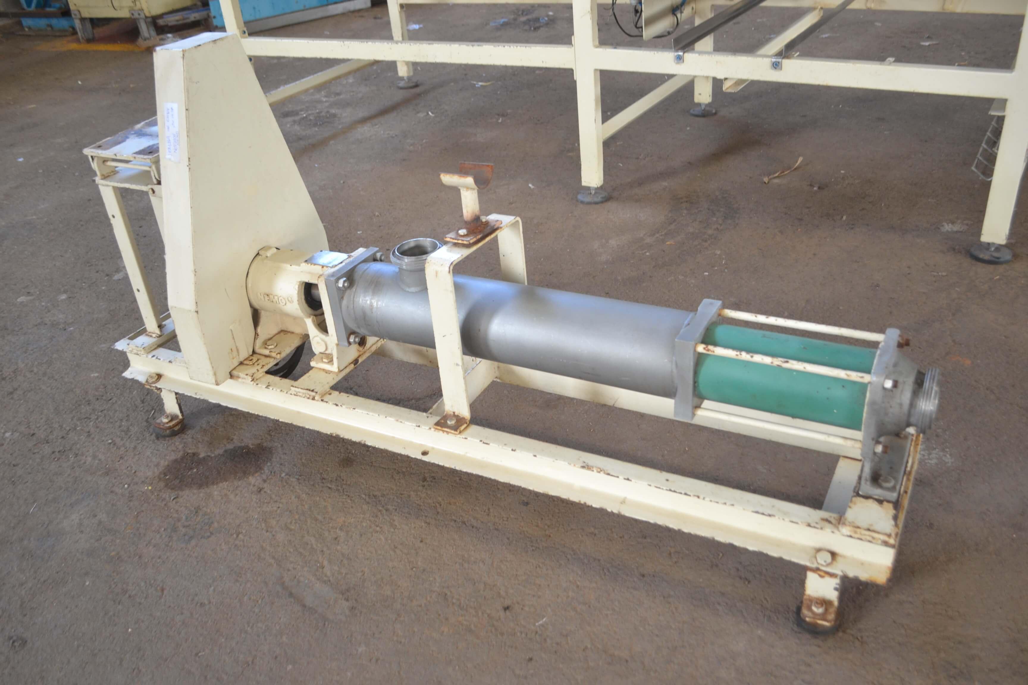 Bomba de Transferência tipo Nemo marca Netszch Modelo: NE 50 A Sem Motor Boca saída da Bomba: 3 polegadas Dimensões do Equipamento: - largura: 420 mm - altura: 800 mm - comprimento: 1,62 metros - diâmetro do corpo da Bomba: 150 mm - boca saída da bomba: 3 polegadas