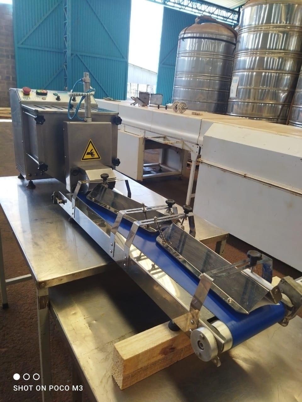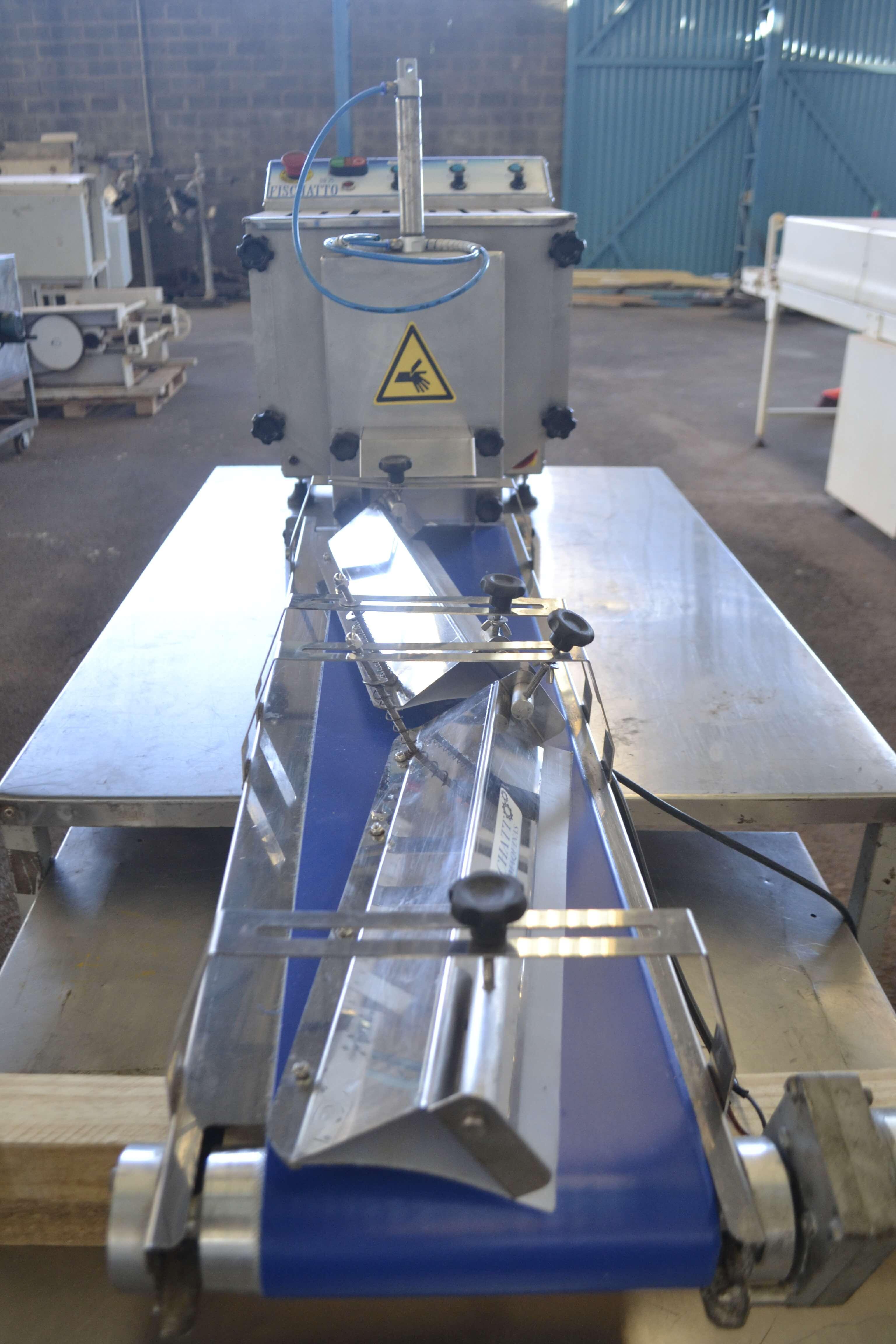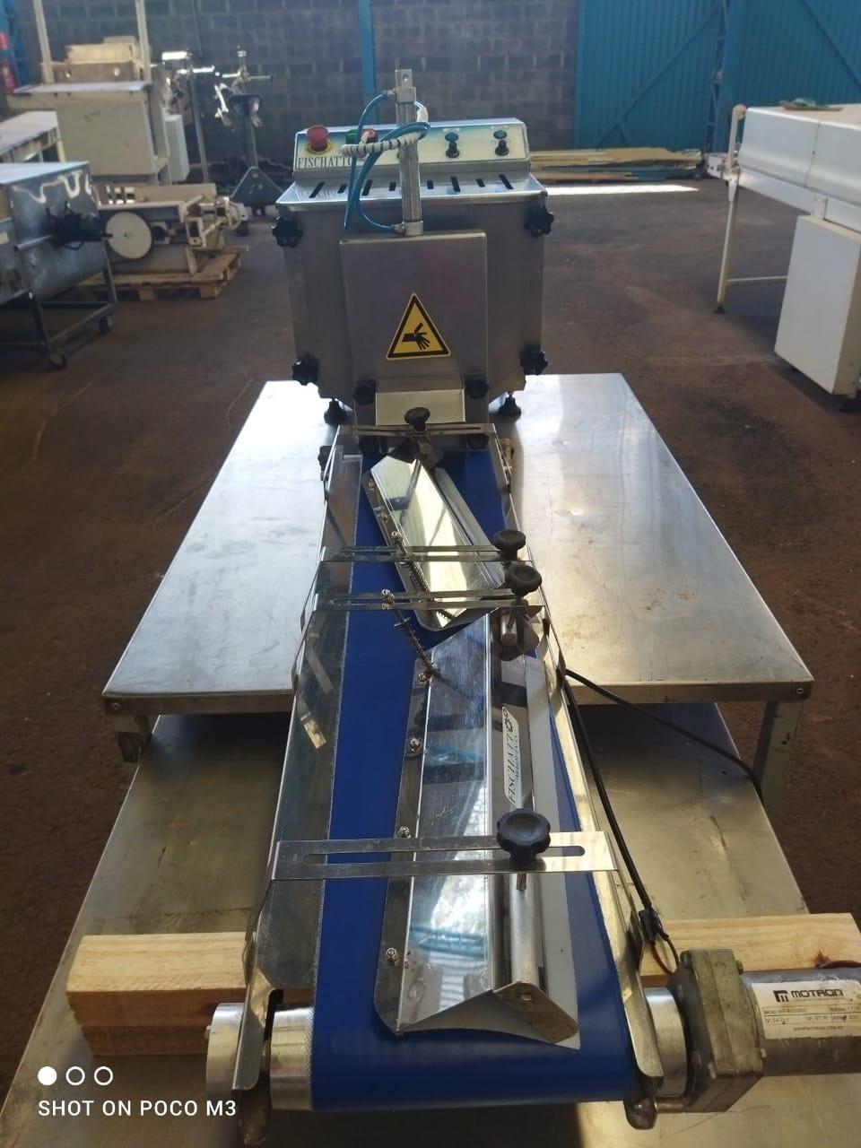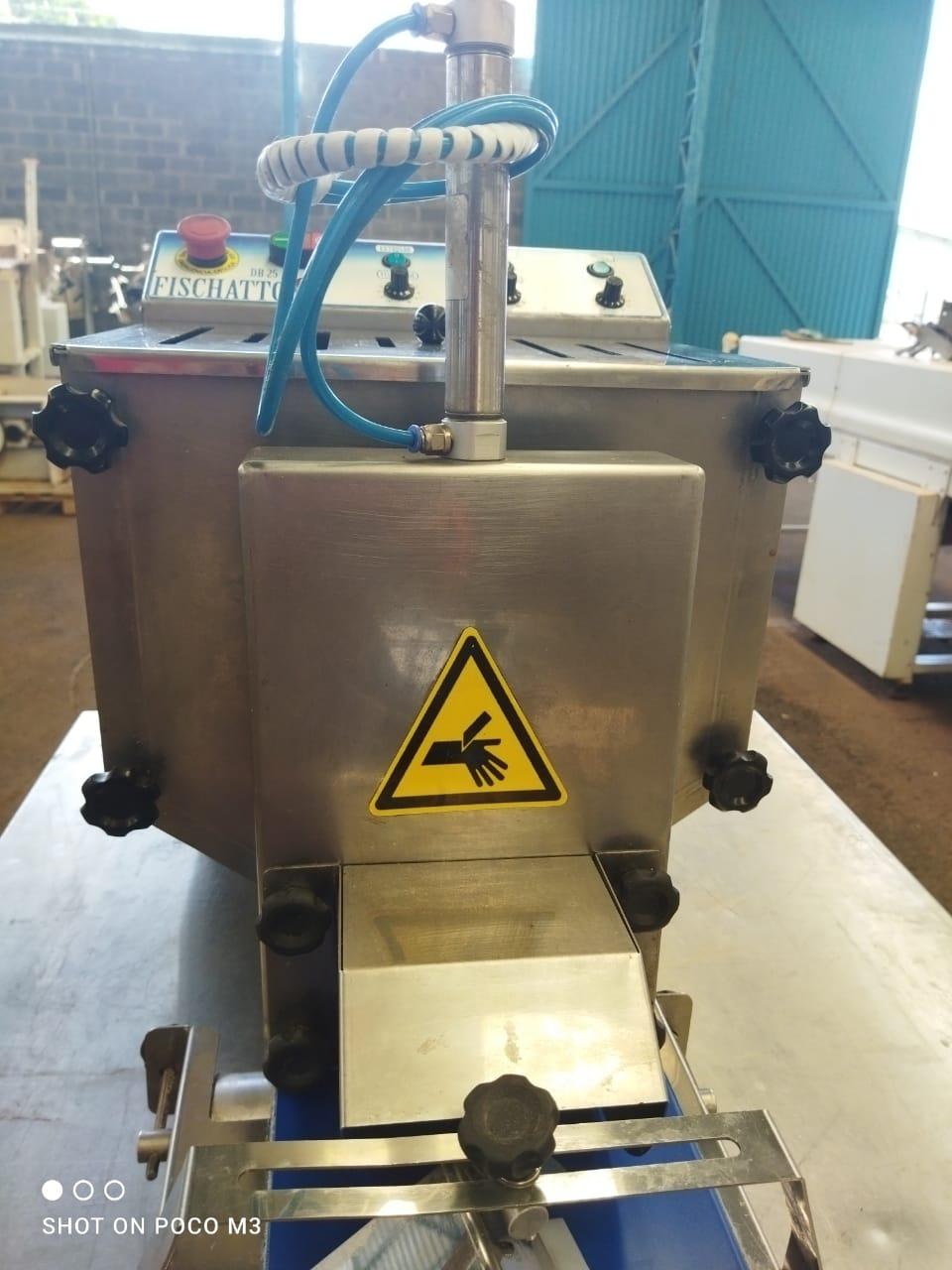 Divisora boleadora automática 120 kg marca Fiscatto. Modelo: DB 25. Equipamento utilizado para linha de fabricação de pães, pizzas, esfihas e outras massas. Boleia e divide massas entre 20 g e 400 g. Características: - Altura: 510 mm - Largura: 410 mm - Comprimento: 1,60 metros - Largura da Esteira: 250 mm - Comprimento da Esteira: 900 mm - Capacidade da Cuba: 20 kg - Gramatura: 20 g à 400 g - Material: Inox
