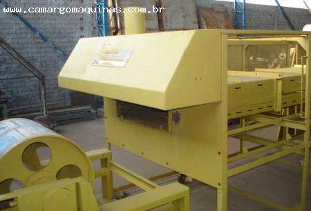 Modelo: M551. Equipamento fabricado em aço inox 304 (externo) e aço inox 430 (interno) com aquecimento à gás GLP, atingindo temperatura de 350 graus. Produção: 40 unidades/hora de massa crua; 60 unidades/hora de massa assada e 1350 unidades de esfiha/hora. Velocidade da esteira variável. Voltagem: trifásico/220 V.