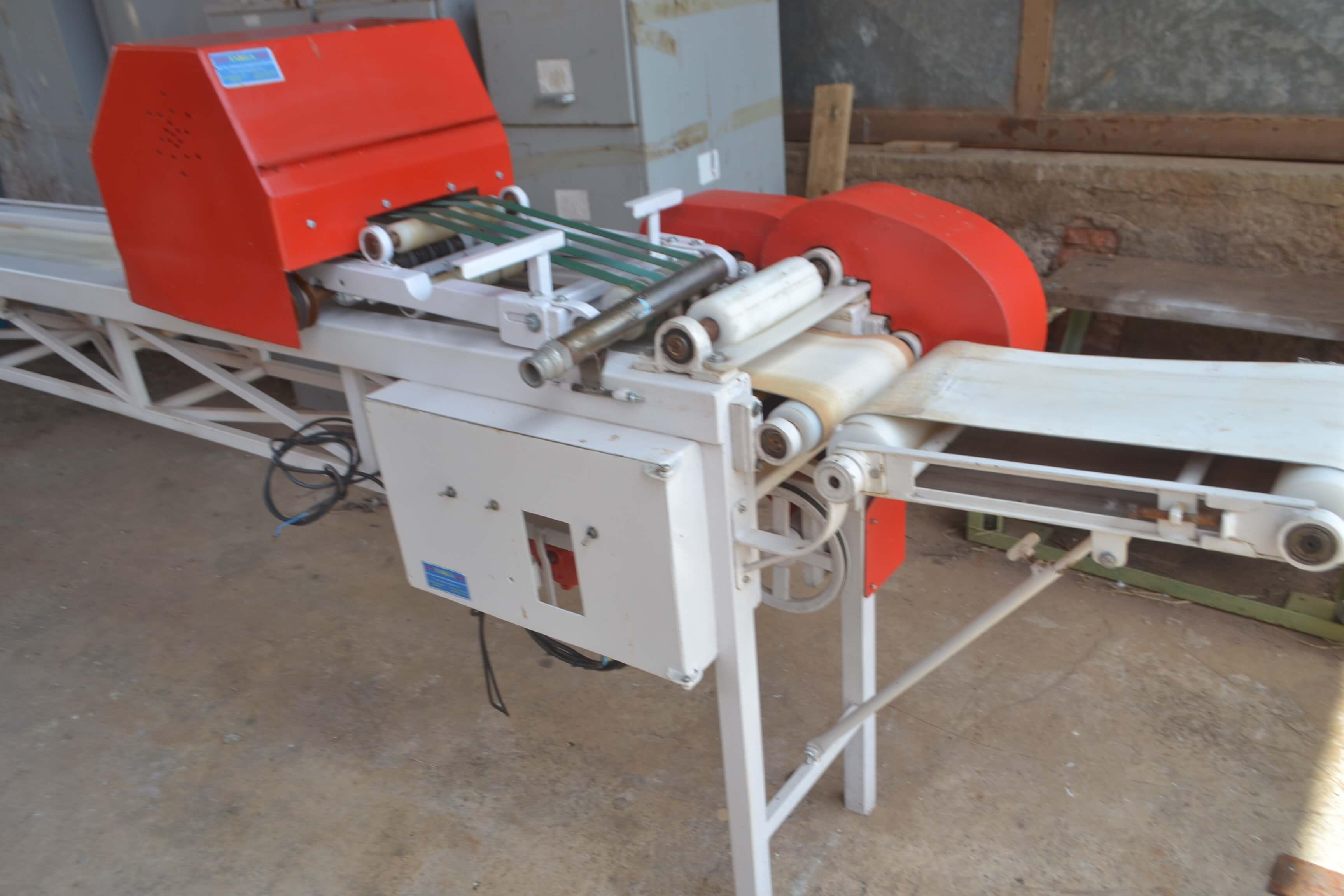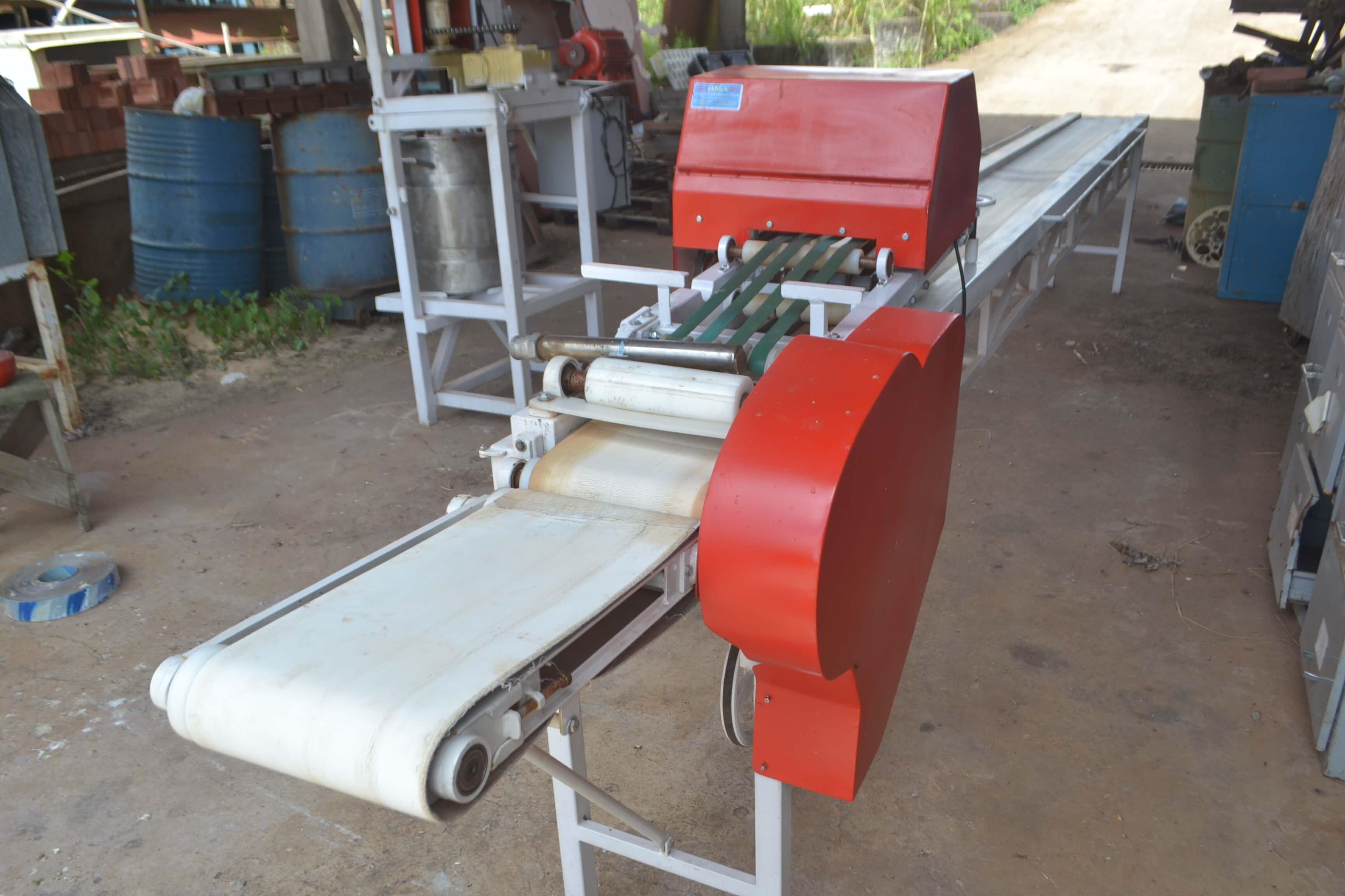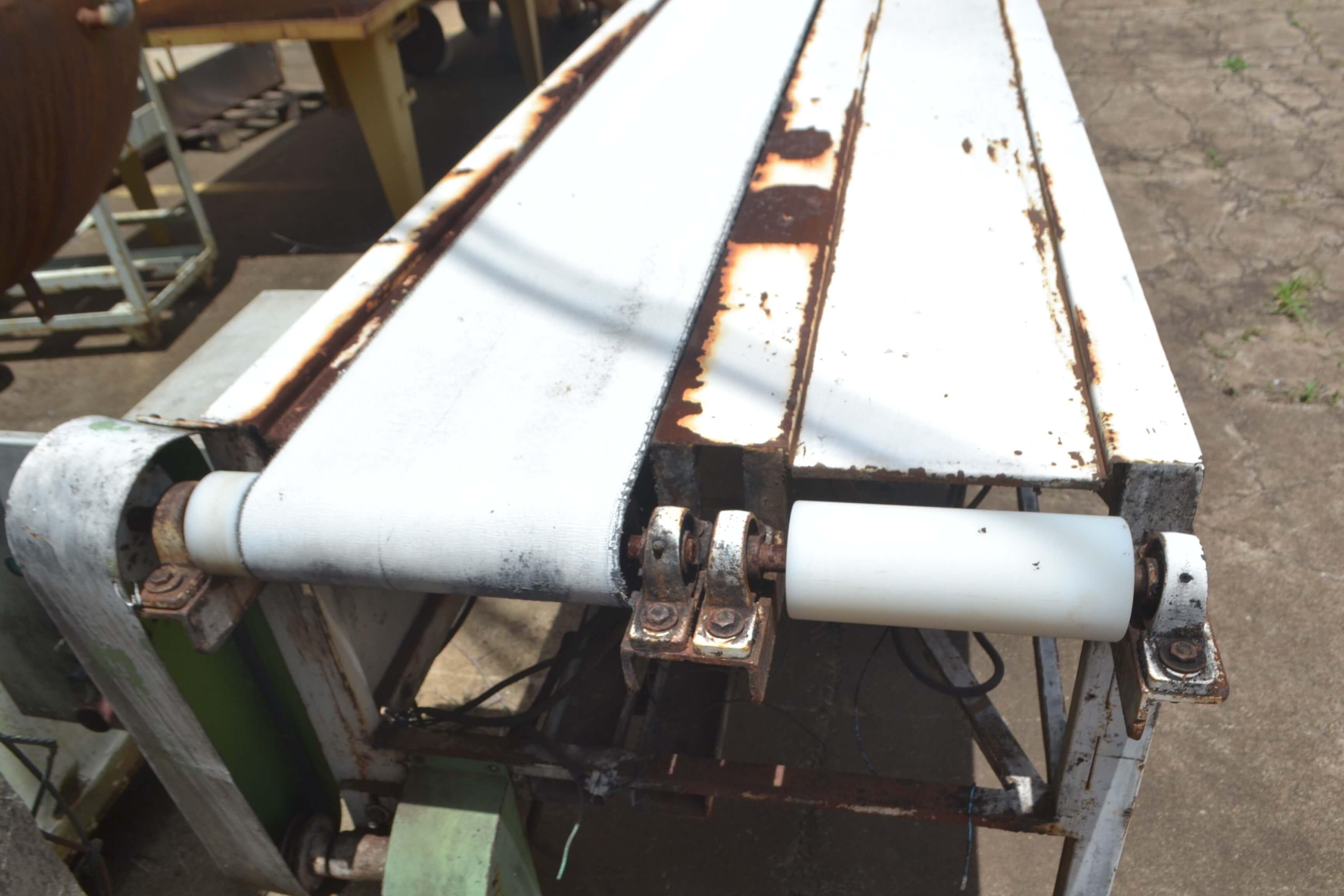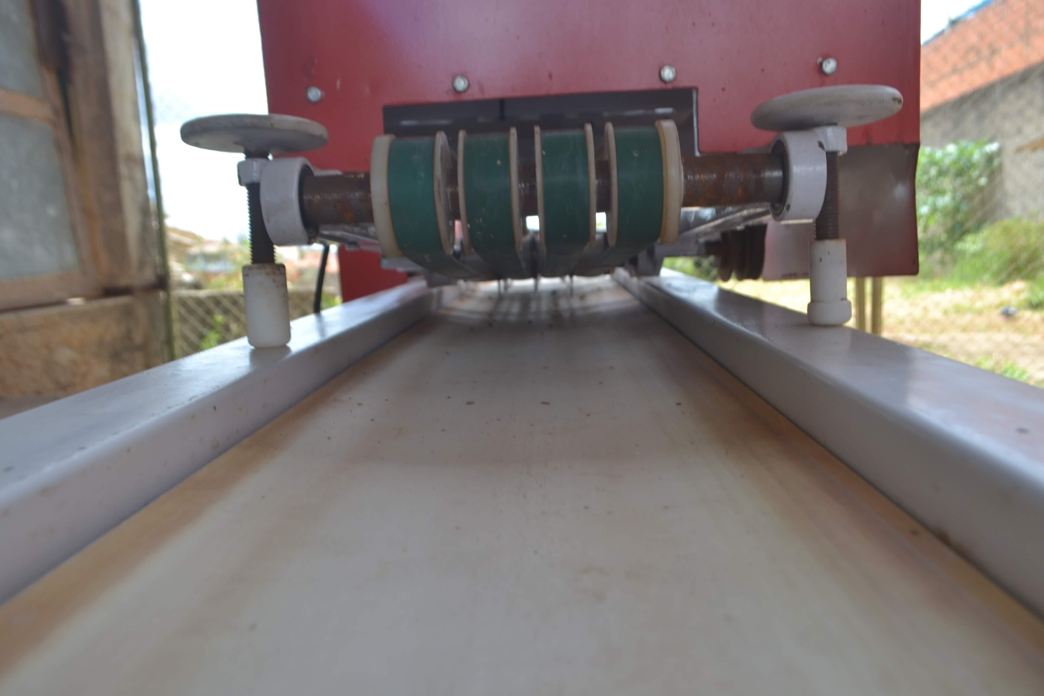 LINHA AUTOMÁTICA DE FABRICAÇÃO DE PÃO DE ALHO Linha automática de fabricação de pão de alho. Marca: Targa. Composta de divididora, modeladora, dosadora e alongadora. Capacidade de produção: 25 bandejas com cinco pães de alho/minuto. Dimensões da esteira: 6 m comprimento e 600 mm de largura.