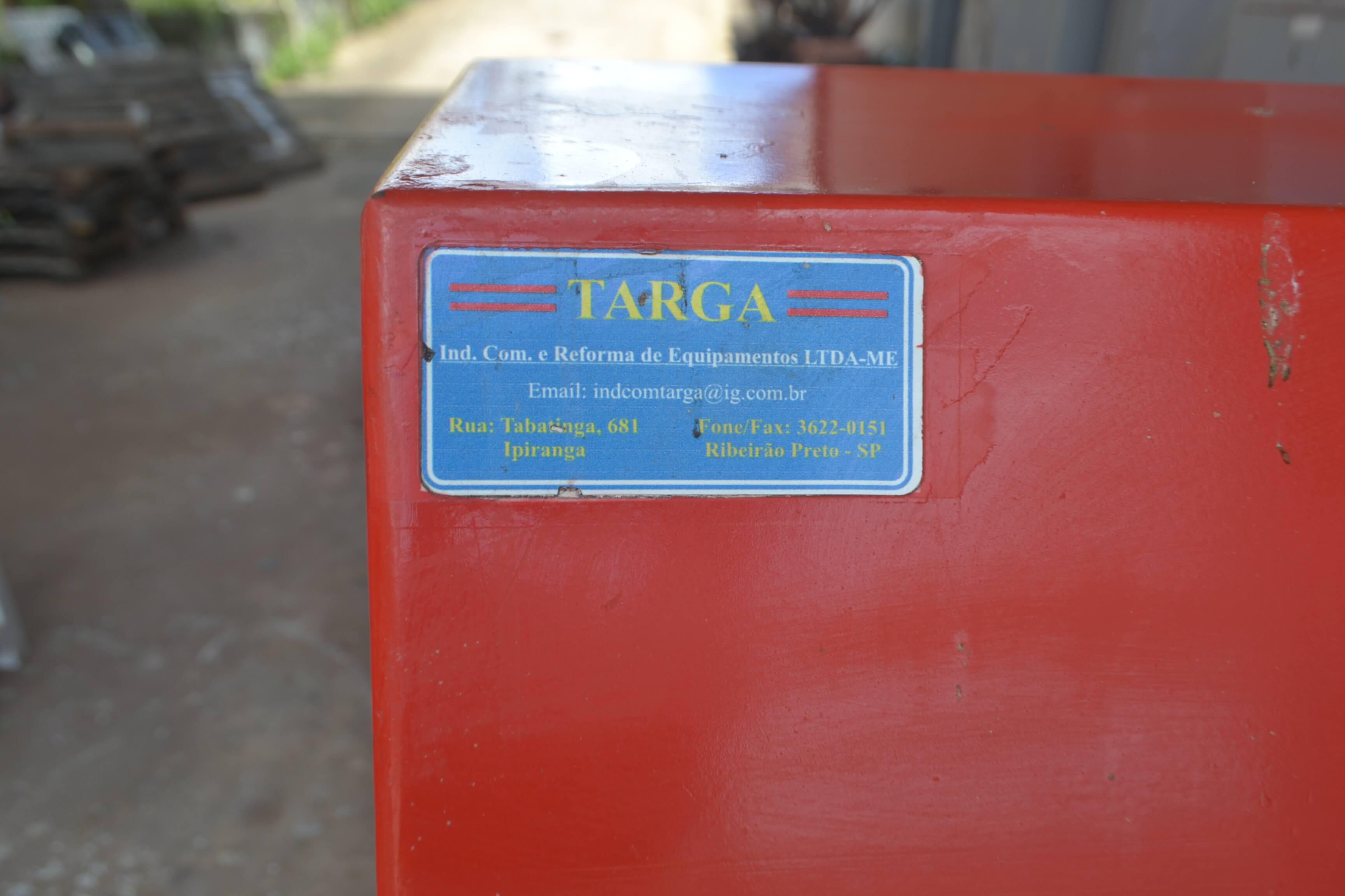Linha automática de fabricação de pão de alho. Marca: Targa. Composta de divididora, modeladora, dosadora e alongadora. Capacidade de produção: 25 bandejas com cinco pães de alho/minuto. Dimensões da esteira: 6 m comprimento e 600 mm de largura.