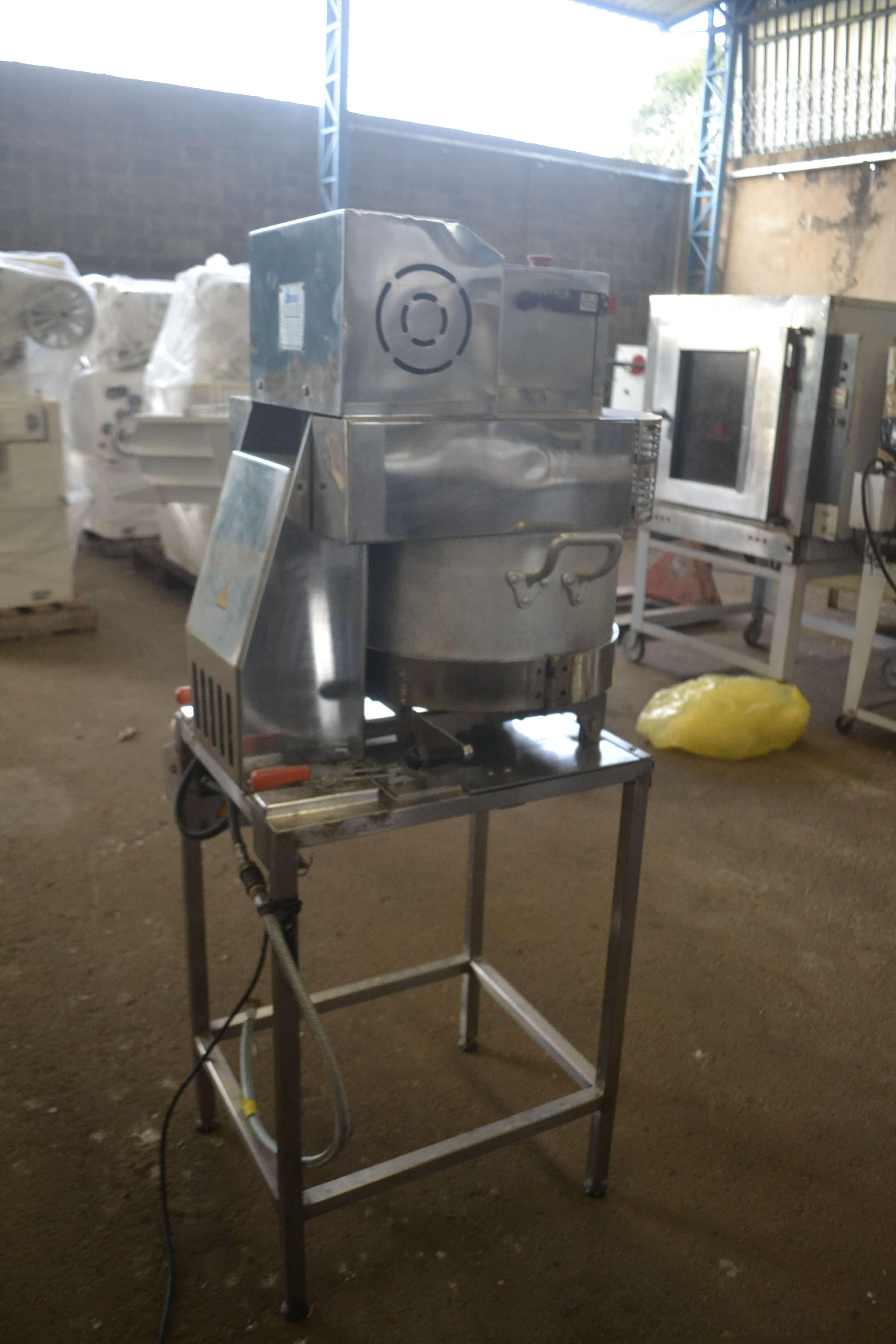 Masseira para salgados e doces 25 Kg por batelada marca Indiana. Indicada para misturar e cozinhar massa para salgados e doces, desfiar frango desossado/ carne etc, a masseira planetária com fogão industrial acoplado tem sistema de fixação de panela, painel de controle com ignição eletrônica para acender o fogo, epés com sistema anti-vibratório e proteção contra umidade. Equipamento em aço inox. Inclui: 01 (um) kit para doce: panela em aço inox e misturador em inox com raspador em teflon 01 (um) kit para salgado: panela em alumínio e misturador em inox em forma de garfo, que também é usado para desfiar frango. Motor elétrico monofásico 220V de 0,75 kW Dimensões: - Altura: 1750 m - Largura: 500 mm - Comprimento: 600 mm - Peso: 80kg