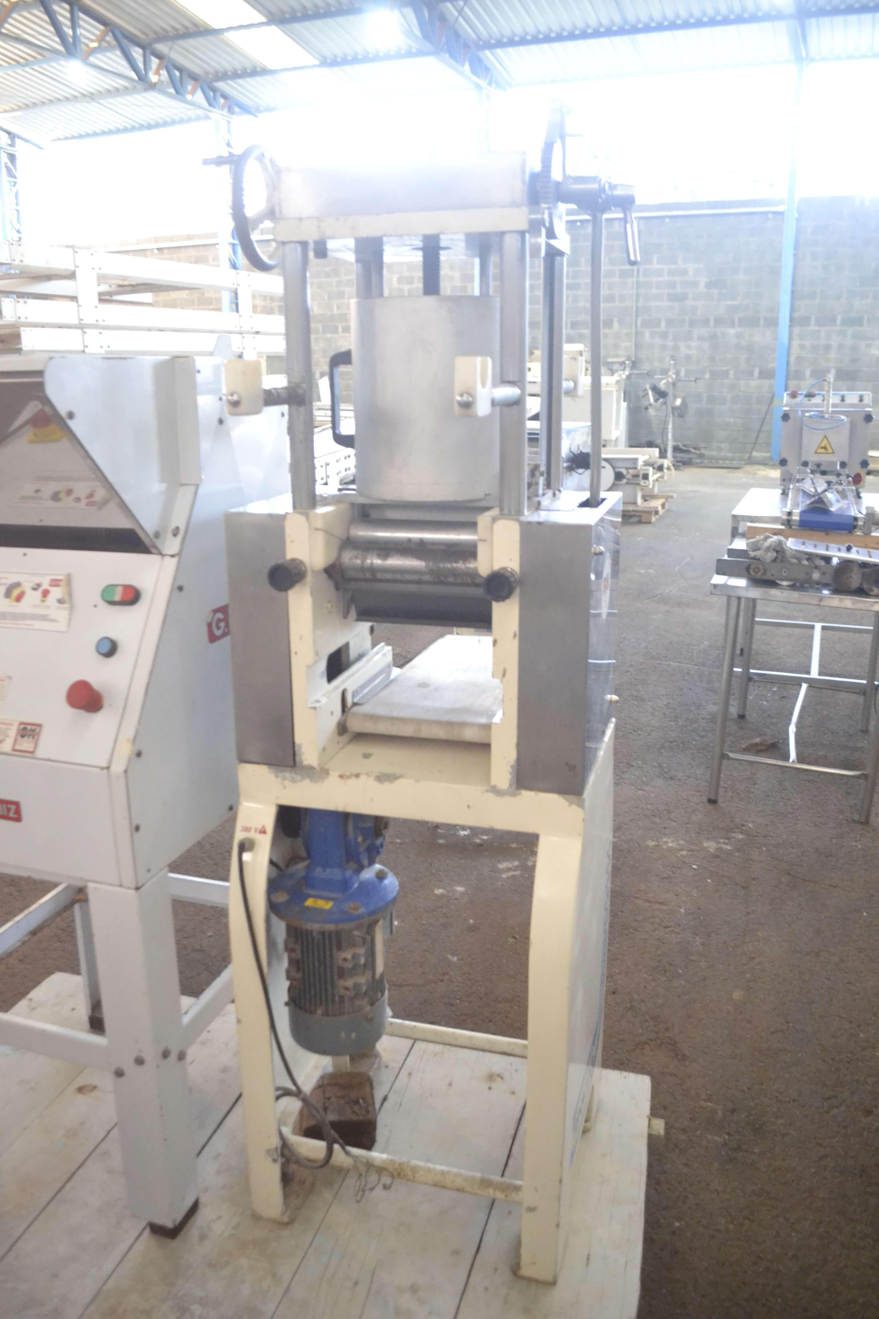 Ravioleteira capacidade até 140 Kg hora marca Rinaudo Hijos. Modelo: RM-100. Origem: Argentina. Carcaterísticas: - Altura: 1.60 m - Largura: 550 mm - Comprimento: 750 mm - Peso: 170 Kg - Voltagem: 380 V trifásica - Motor: 0,75 HP/1500 RPM