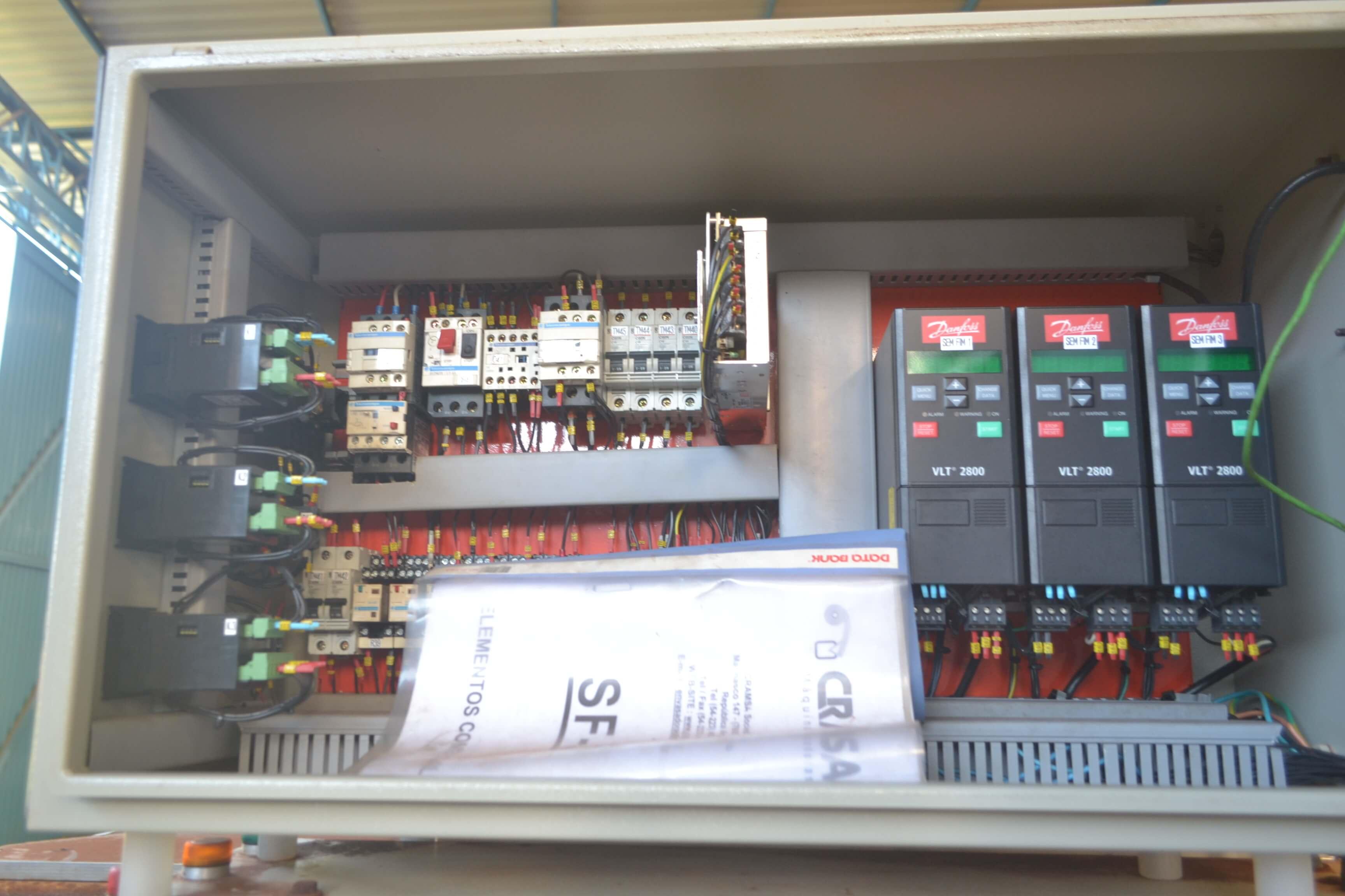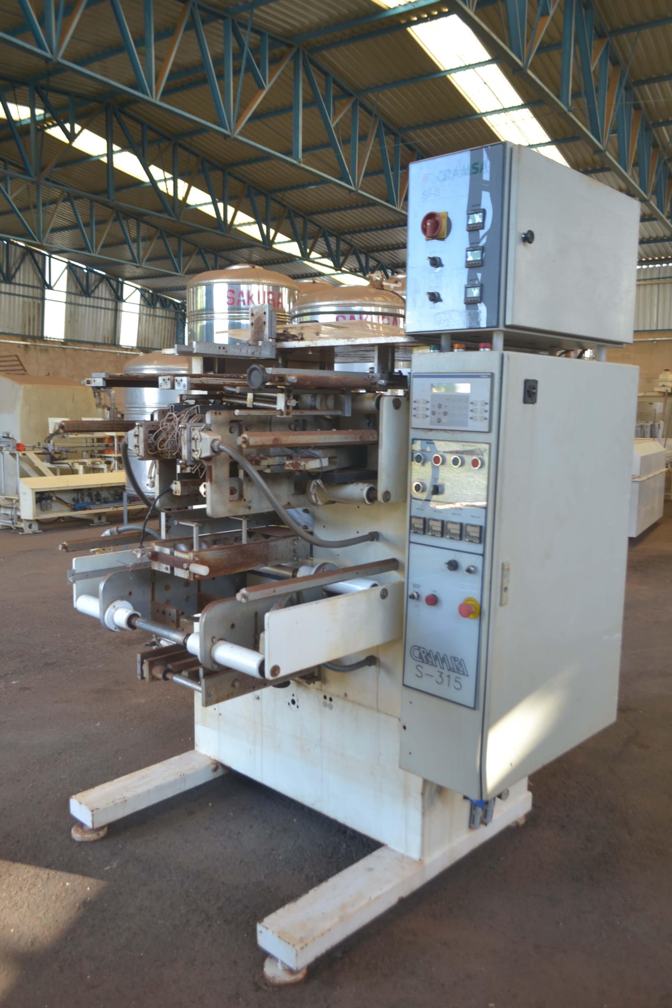 Sacheteira 4 soldas para pós, líquidos ou pastosos marca Cramsa Modelo: S315 Velocidade: 80 unidades/min Origem: Argentina Características do Equipamento: - Largura máxima bobina: 630 mm - Largura máxima de selagem: 315 mm - Comprimento envelope: 50 a 300 mm - Altura: 2.20 m - Comprimento: 1.50 m - Largura: 1.80 m - Velocidade: 80 unidades/min