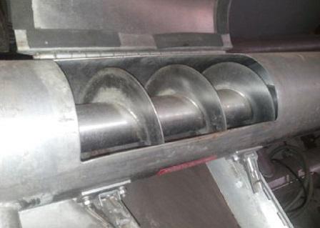 Alimentador de rosca com motor e silo. Comprimento aproximado 5 metros em aço inox.