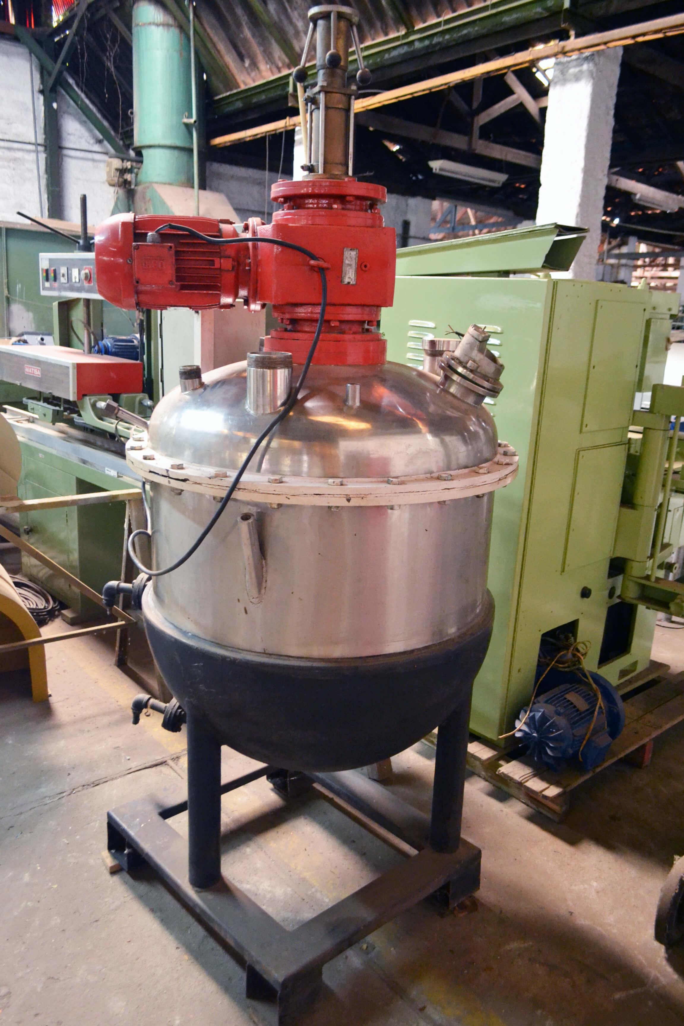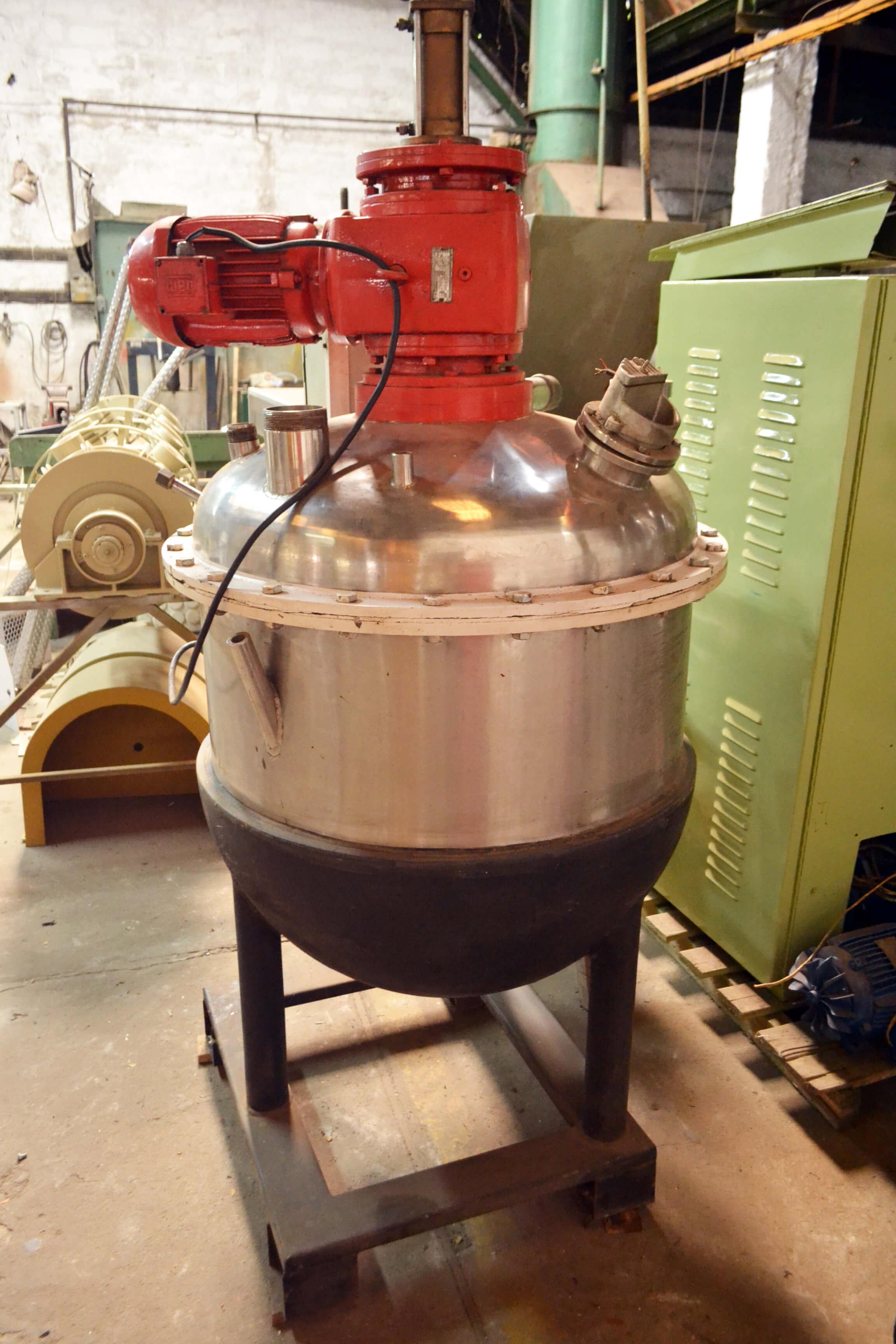 Equipamento em aço inox, encamisado ('meia cana') com camisa externa em aço carbono.