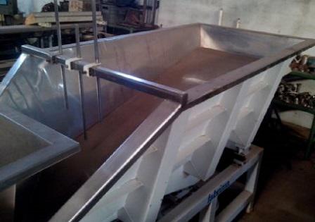 Calhas vibratórias para Maquinas de embalagens marca Masipack/Fabrima modelo FV 700. Medidas: Comprimento 2,10 m; largura 1,10 m; altura 1,56 m.