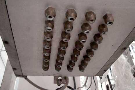 Pingadeira para chocolate marca Jcmaq, com 10 bicos para sistema contínuo de produção. A forma...