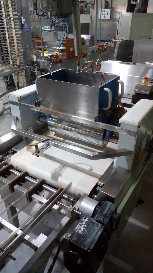 Linha de fabricação de wafer marca Haas. Composta de dosador de farinha, misturador de massa...