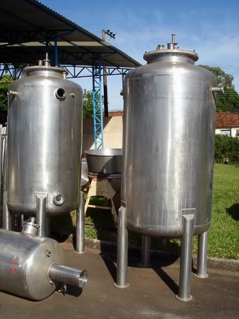 Tanques reservatórios em aço inox com capacidades diversas.