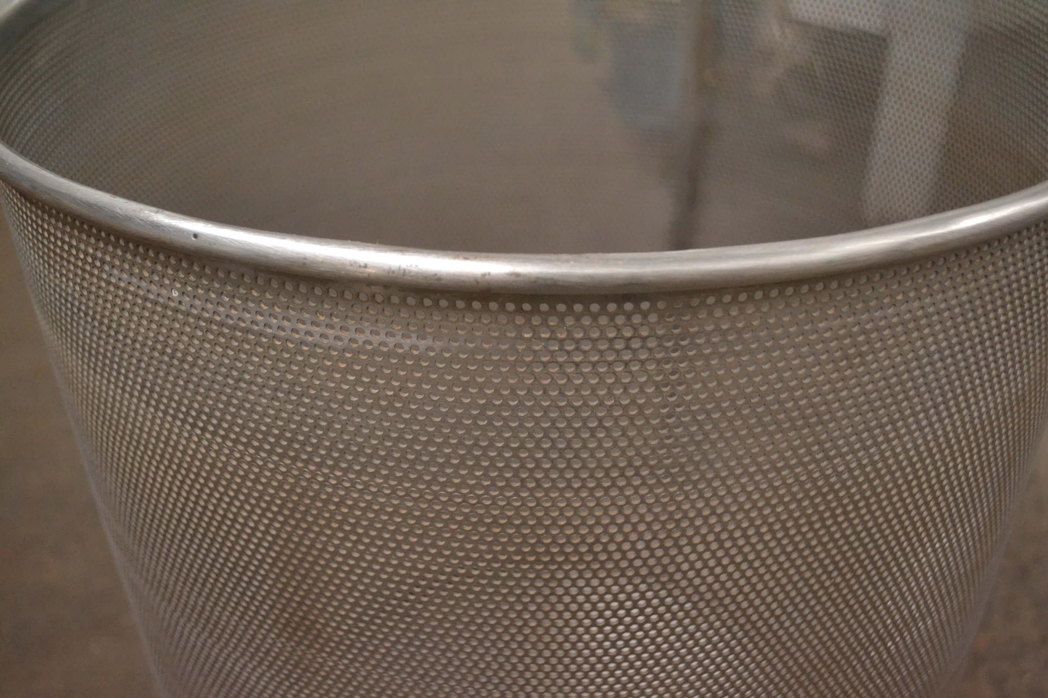 Com cesto facilmente removível e perfuração especial para água.