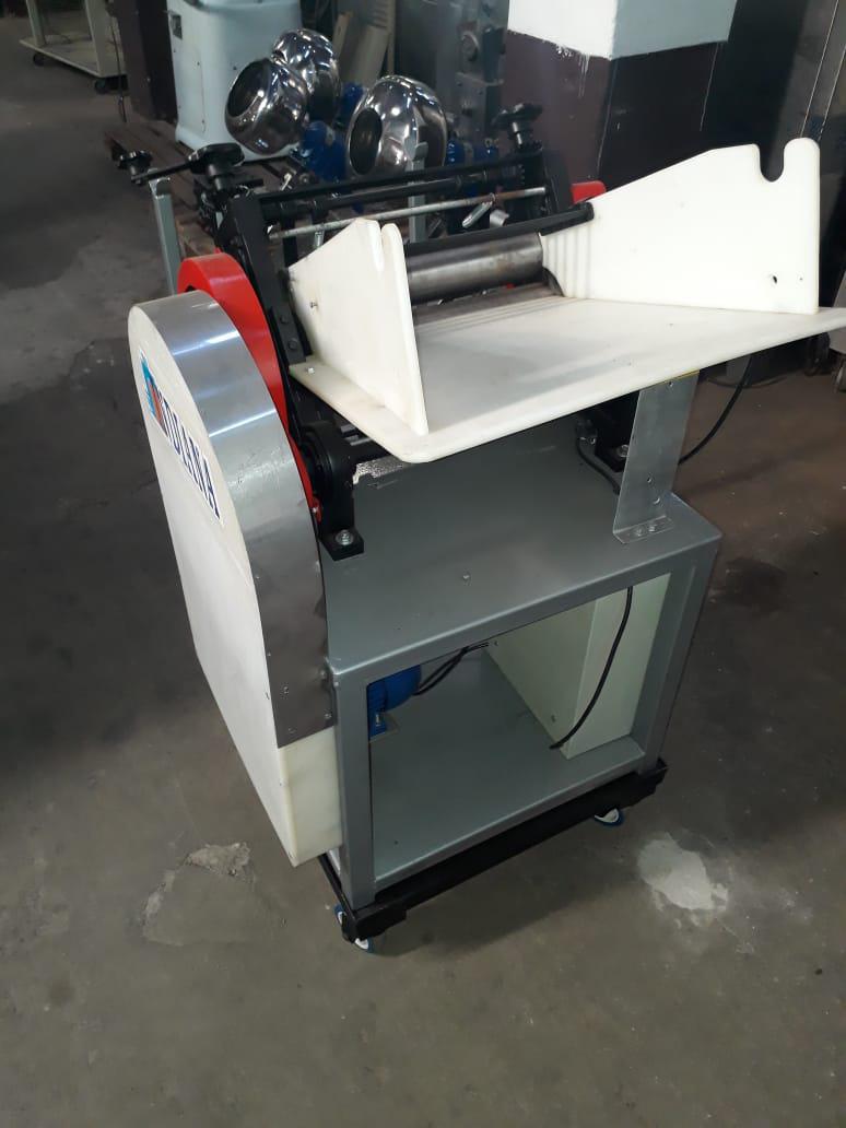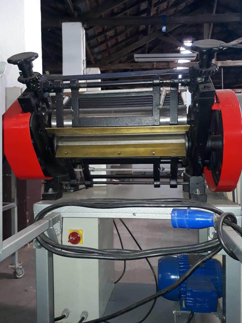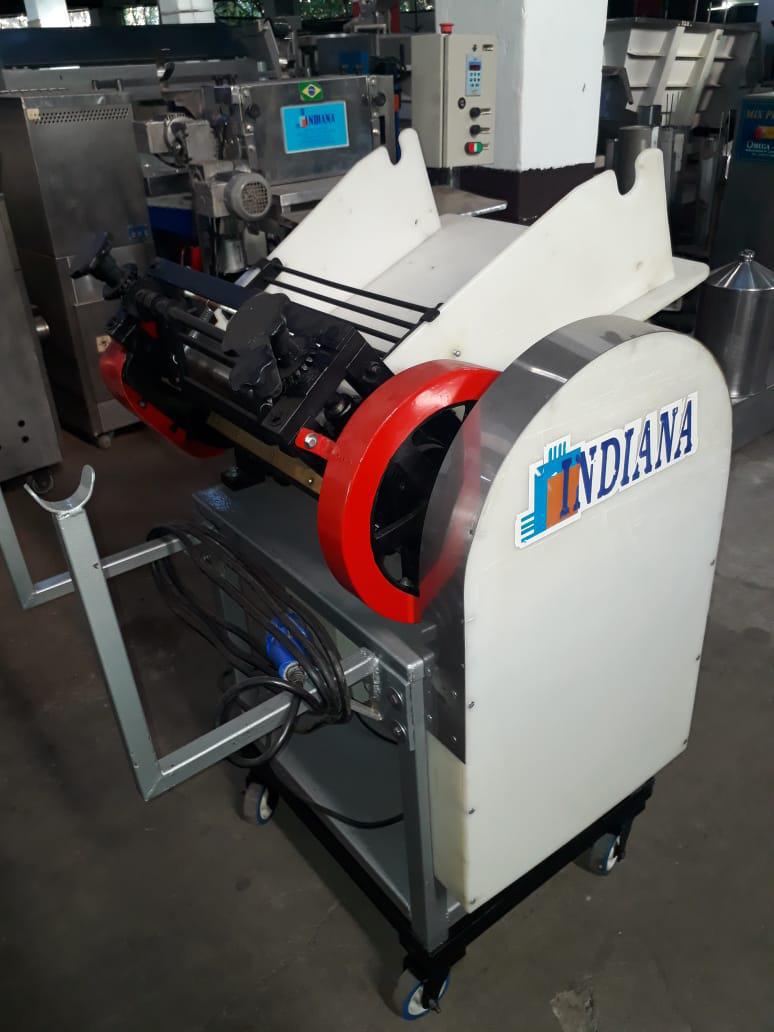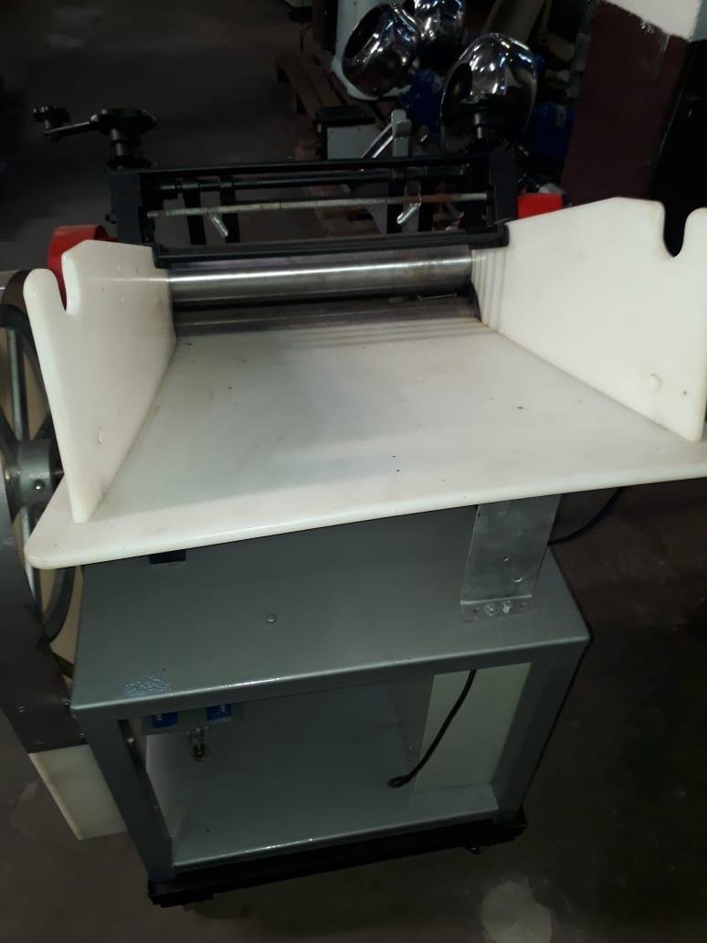 Cilindro 400 mm Indiana. Modelo: Rex Luxo. Equipamento com dois rolos laminadores para folha de massas, com mesa tubular em aço carbono e bica e apoios de massa em polipropileno. Equipamento indiacado para produção de lasanha e pastel.