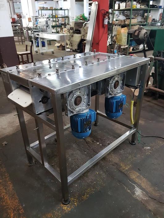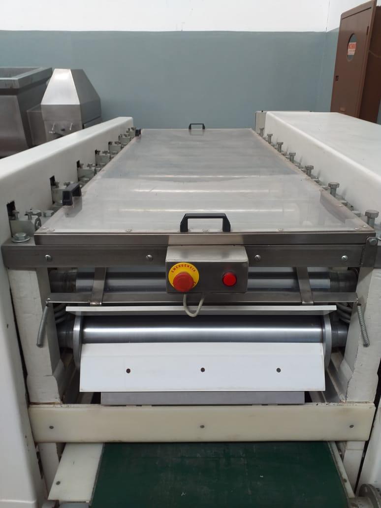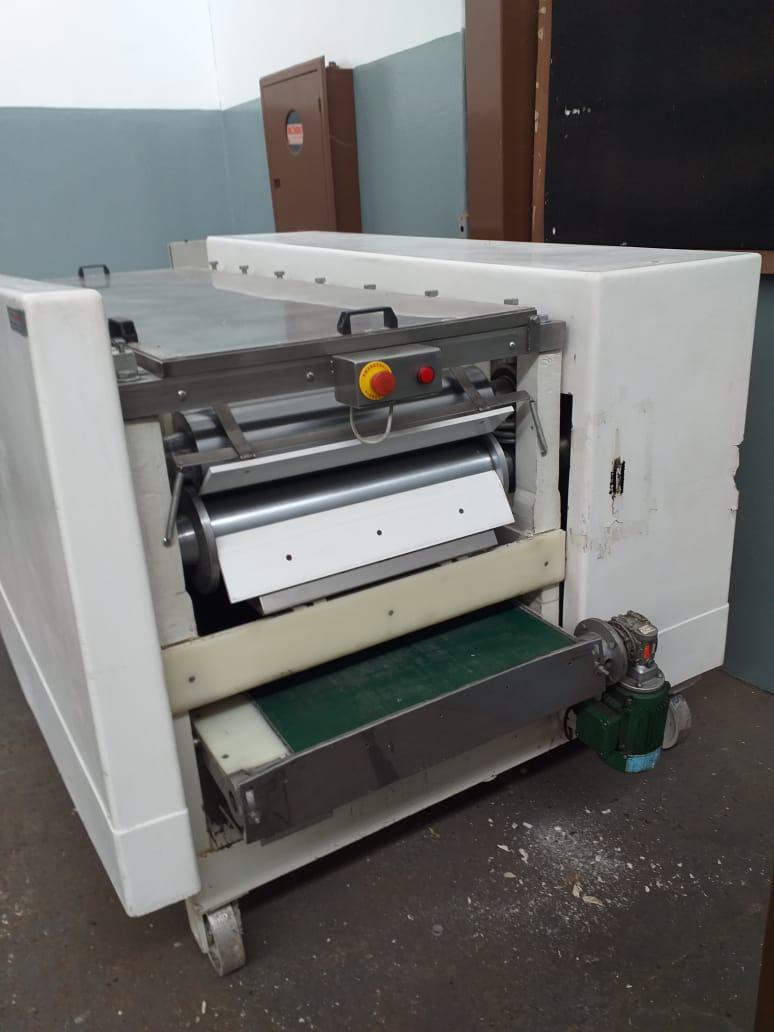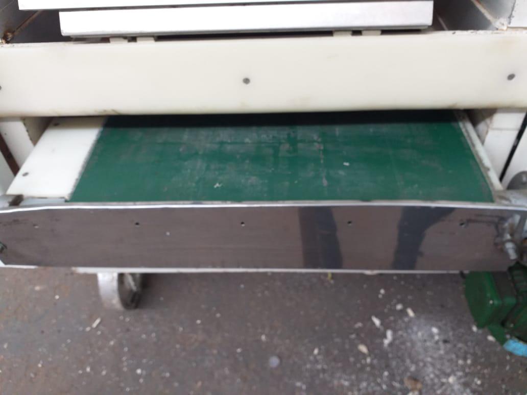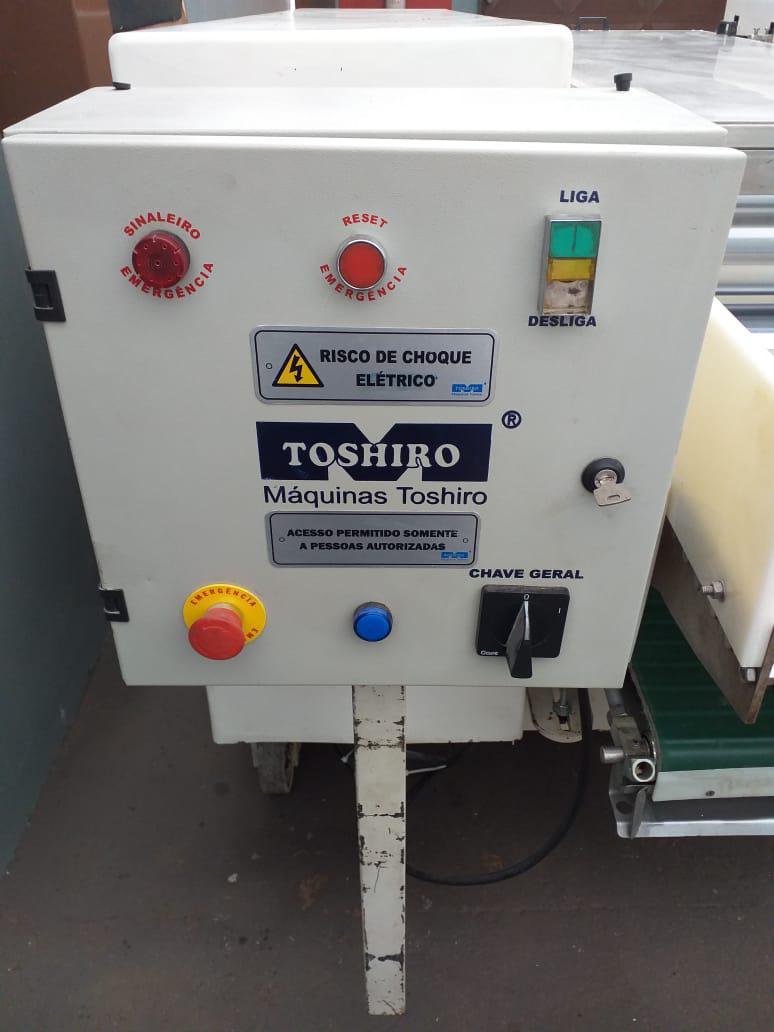 Cilindro de 7 rolos 600 mm marca Toshiro. Equipamento com regulagem de abertura dos cilindros (até 4 mm), com esteira e sistema de segurança (relês e sensores) em conformidade com a NR12. Motor 5cv,4p,60hz.