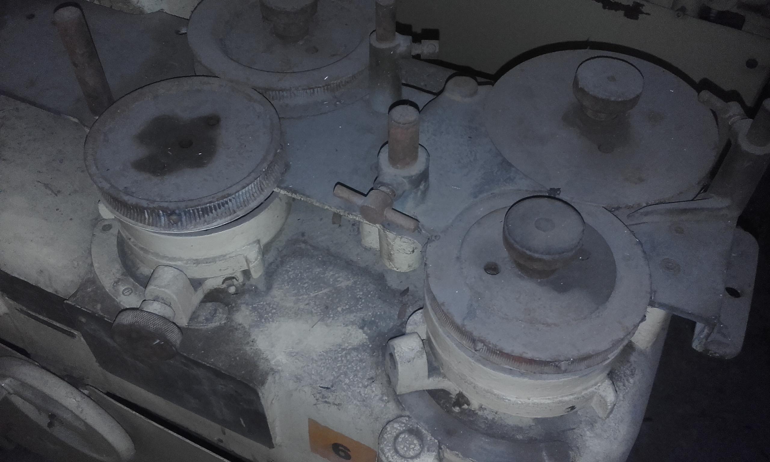 Conjunto de fabricação de balas composto de bastonadeira e trafila acoplados. Marca Hansella Werk.