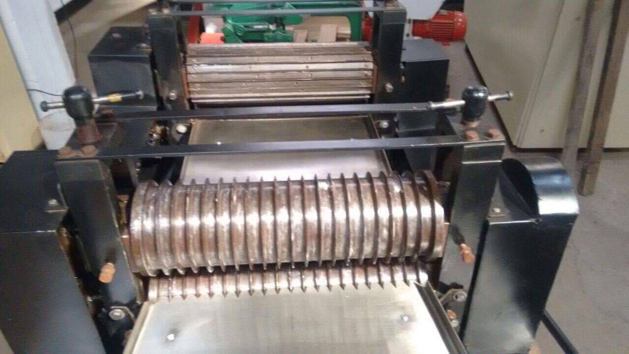 Cortador de balas de banana e outros. Equipamento promove cortes tranversal e longitudinal.