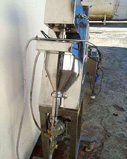 Sistema de dosagem contínuo marca MCI para produtos e alimentos pastosos com 2 inversores de frequência , 2 motores , 1 rosca sem fim e com sistema de 'by-pass' . Fabricada totalmente em aço inox.