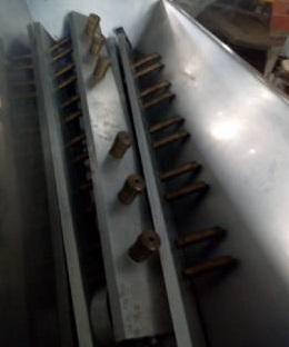Dosadora NKS 10 bicos. Equipamento destinado a produção de bem casados, biscoito tareco, mousses, biscoito de polvilho (bolinha e palito), suspiro, bolos e doces 'dois sabores'. Equipamento com estrutra em aço carbono e silo receptor de produto em aço inox. Produção: 5400 dosagens/hora aproximadamente. Largura de entrada: 400 mm.
