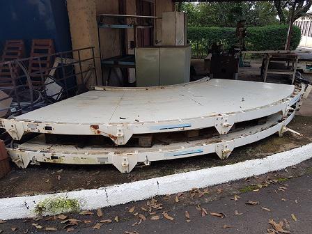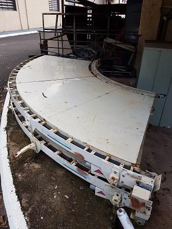 Duas unidades de esteira em curva em aço carbono. Dimensões: 1.40 m de largura x 3.50 de comprimento.