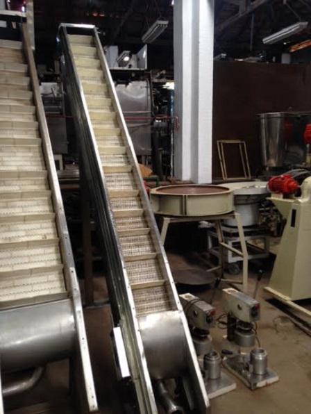 Elevador de caneca Matisa. Modelo: ME-2. Equipado com moega receptora metálica com rosca sem fim. Altura de elevação: 3.80 m.