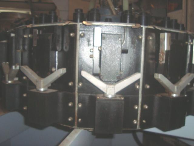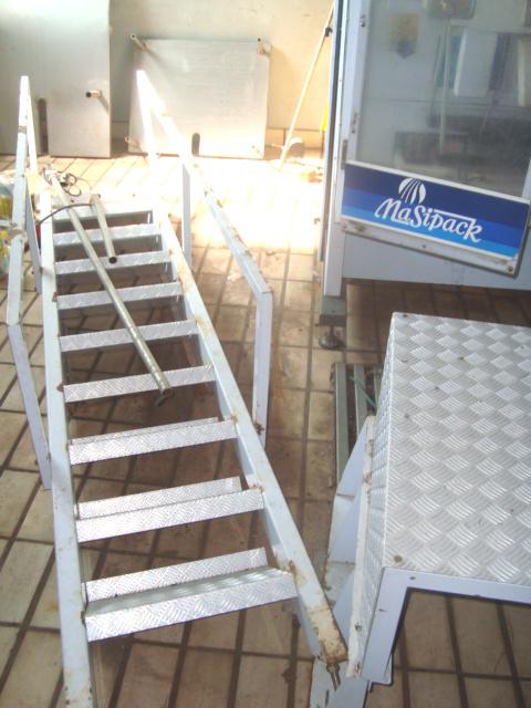 Embaladora multicabeça, marca Masipack, com 14 balanças, com plataforma e escada.