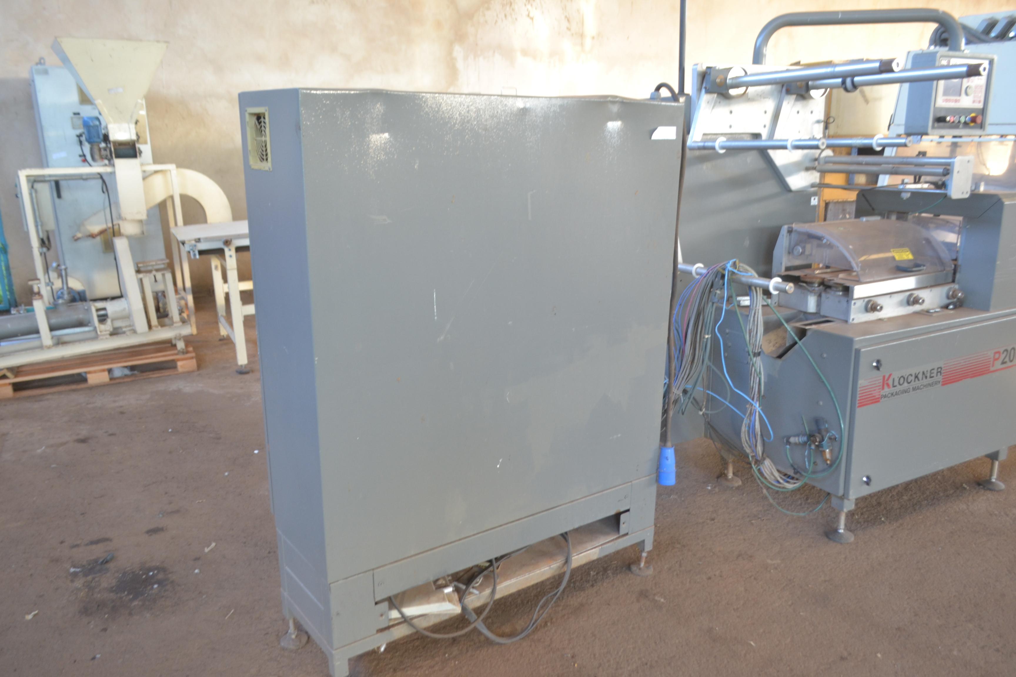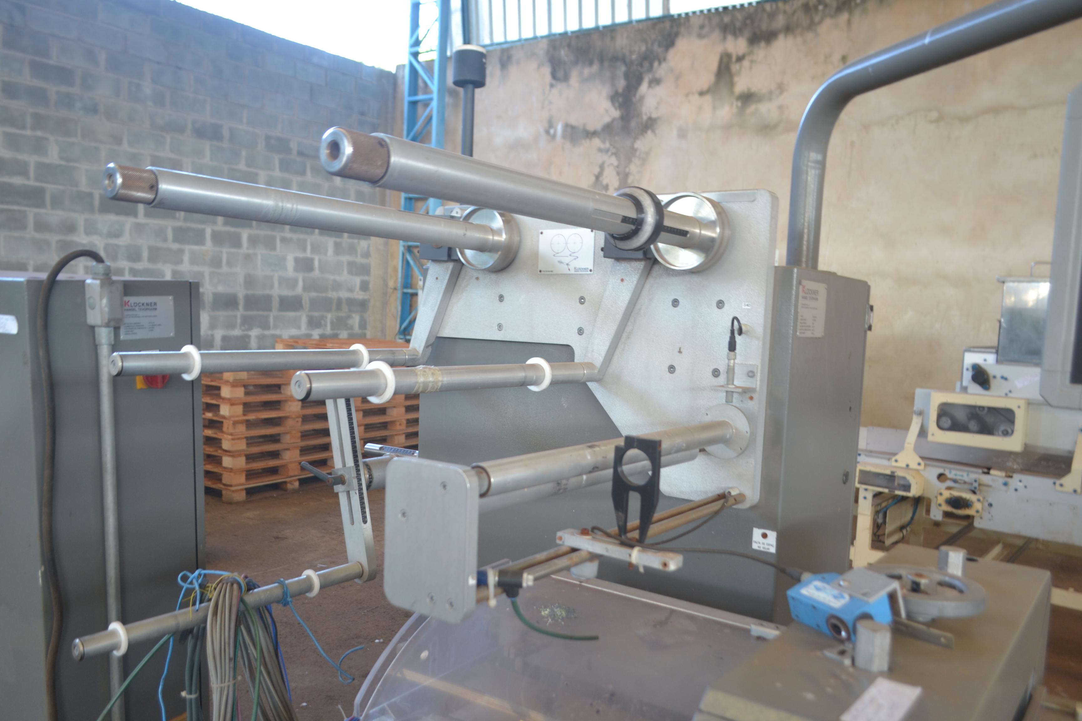 Embaladora Flowpack marca Klockner. Modelo: Pack 200. Produção: até 350 embalagens/minuto. Embaladora de fluxo horizontal, com servo motor, para filme selável a frio ou a quente, indicada para produtos de panificação, confeitaria, chocolates e outros. Temperatura máxima dos rolos seladores: até 350 graus. Temperatura máxima das lâminas seladoras: 350 graus. Atende a 24 formatos diferentes de pacotes.