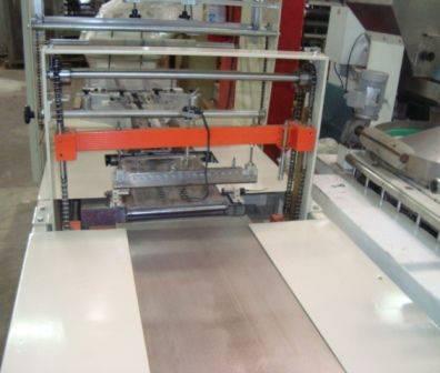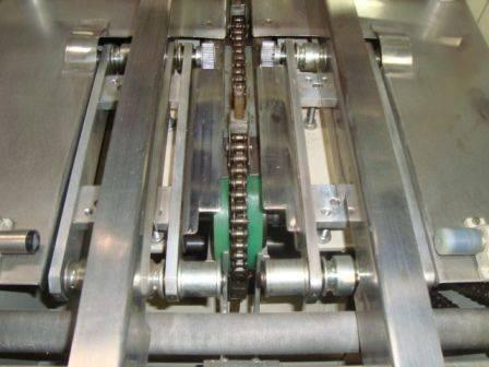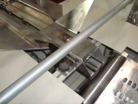 Embaladora Termo Encolhivel automática Weldotron. Equipamento com sistema de selagem transversal e de vácuo para filme térmico. Produção entre 40 (via única) e 80 (via dupla) unidades/min.