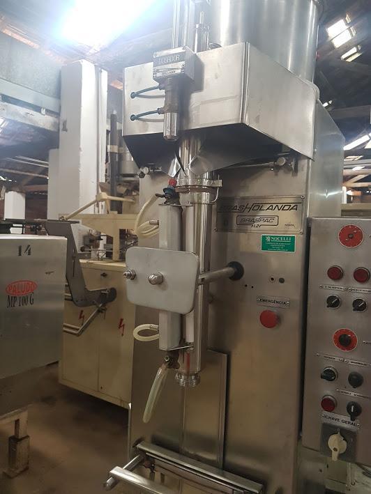 Envasadora automática para líquidos Brasholanda. Equipamento em aço inox total com capacidade de até 30 sacos/min