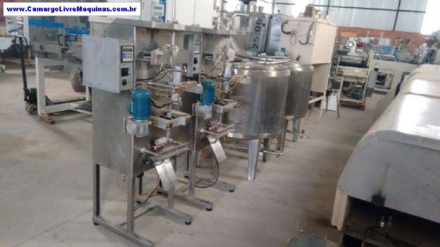Duas linhas de fabricação de cremosinho e geladinho marca Dmon capacidade 200 unidades/hora. Linha composta de tanque reservatório de 300 litros e bomba para transferência do produto.