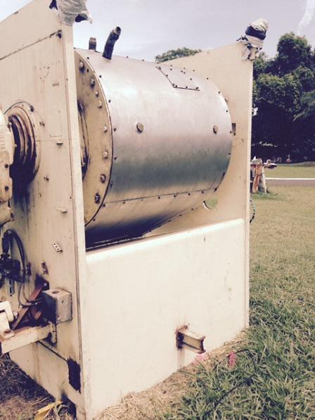 Misturador com capacidade de 500 Kg e sistema de tombamento hidráulico. Área interna e mexedor em aço inox.
