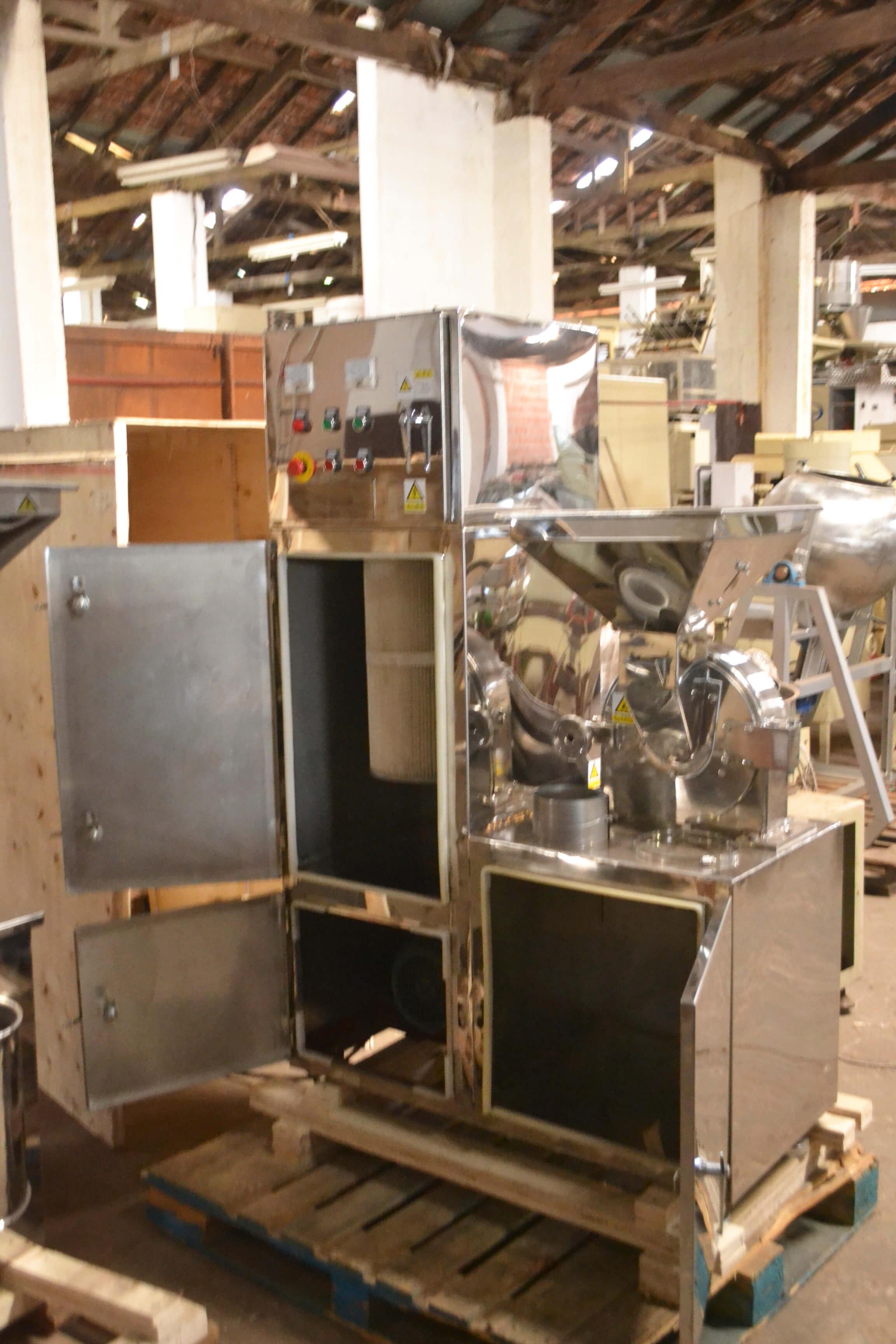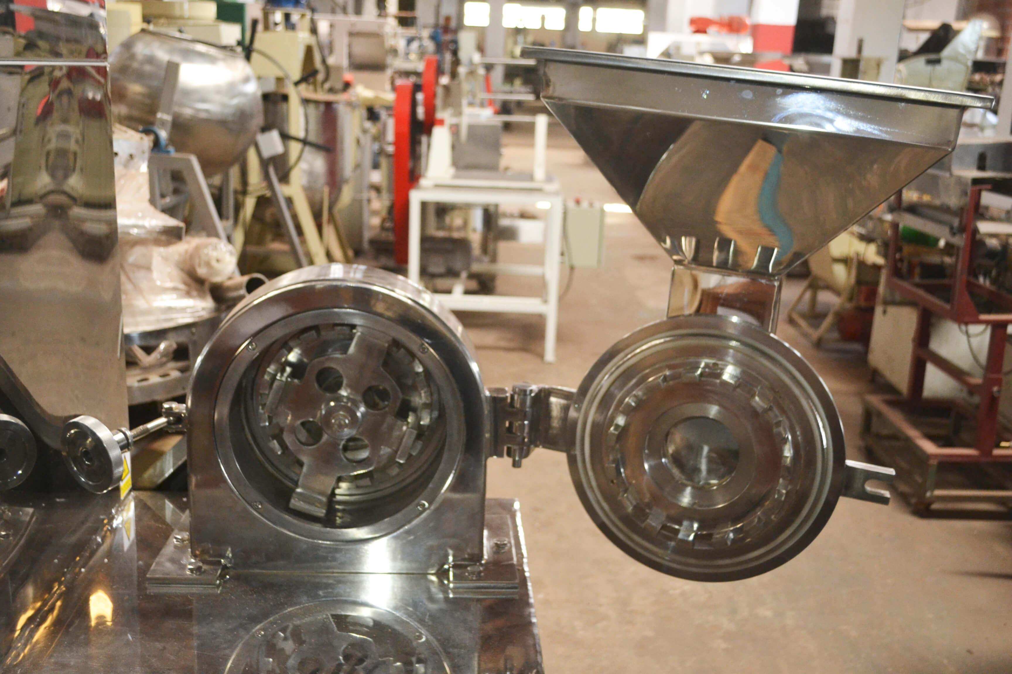 Moinho universal em aço inox capacidade 250 Kg/h. Equipamento compacto para a moagem de açúcar e ervas em gera. Dispõe de sistema lacrado de filtragem do ar, para a retenção do produto moído, o que mantém o local mais limpo. Equipamento novo/sem uso. Origem: China.