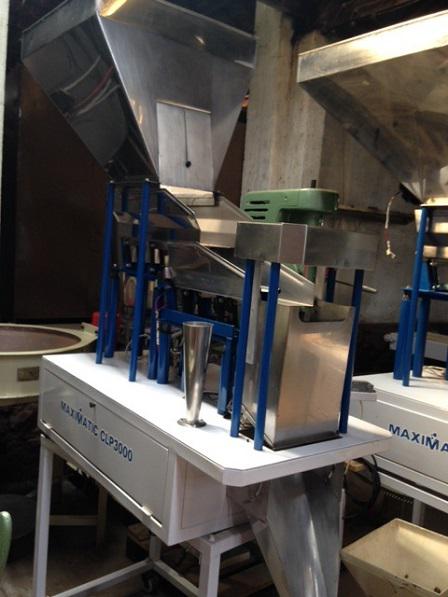 Pesadora de precisão marca JHM modelo Maximatic CLP 3000 em aço inox, com estrutura em aço carbono. Equipamento com painel Toutchscreen (CLP), com 100 programas de memória para diferentes produtos e pesos. Destinado à pesagem de produtos como pão de queijo congelado, biscoitos, grãos e ervas entre outros.