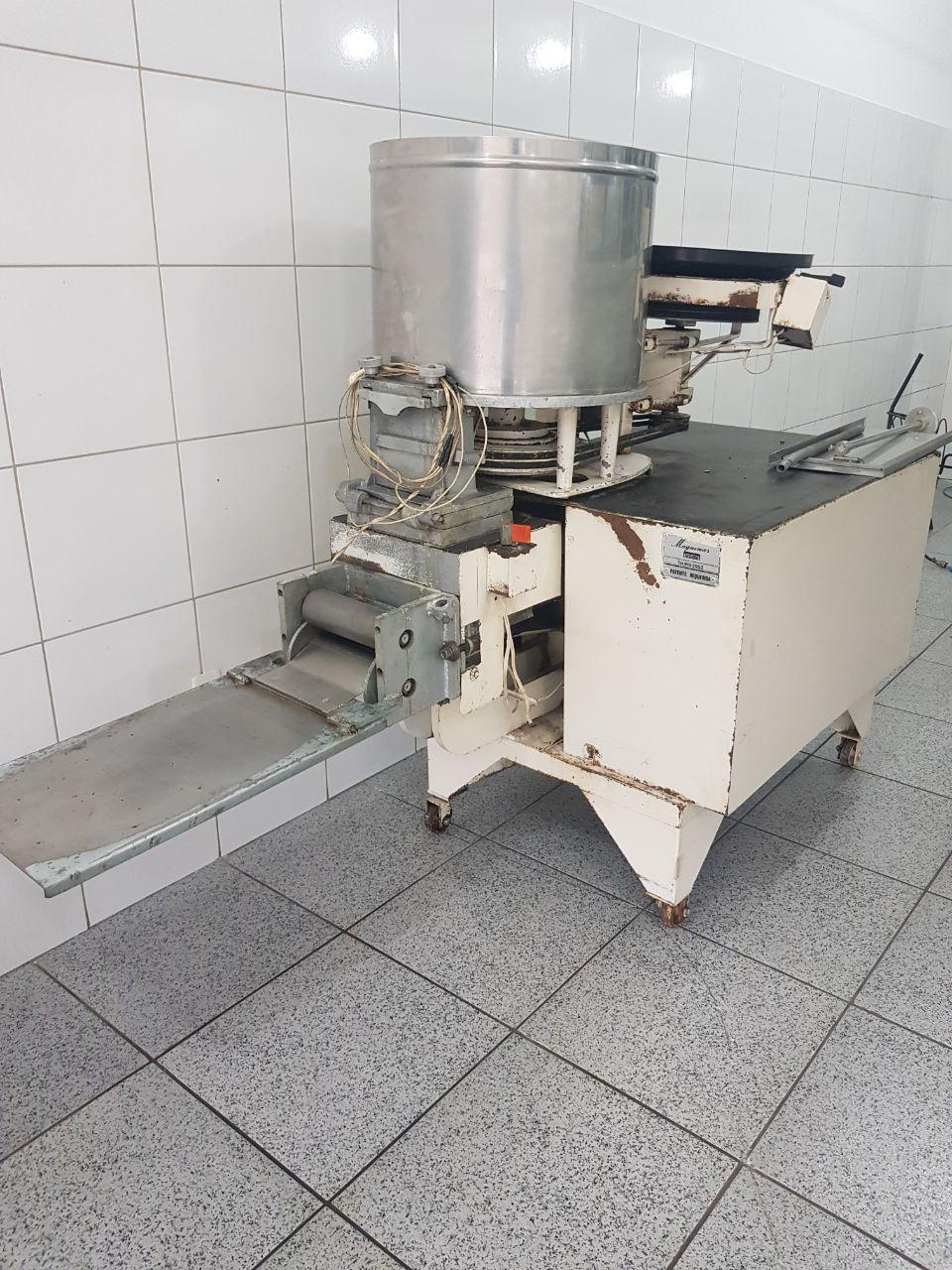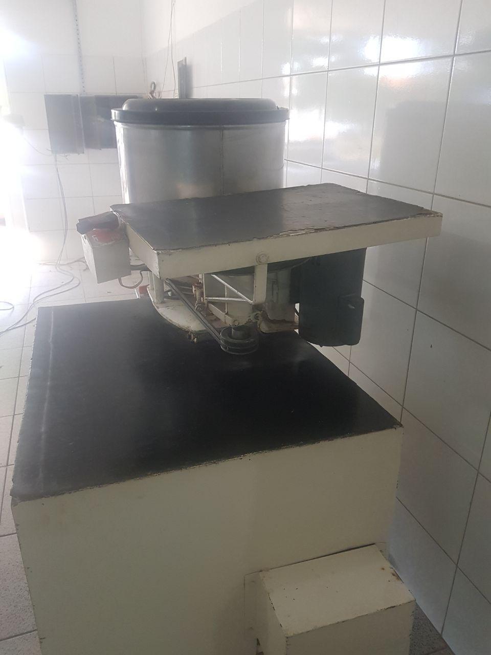 Prensa compactadeira com masseira Toshiro. Compactadeira média com masseira de 25 Kg marca Toshiro. Equipamento conjugado destinado a misturar ingredientes de preparo da massa e compactar a mistura.