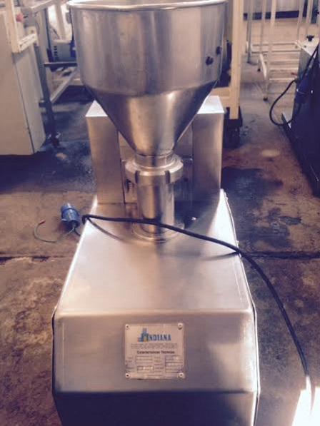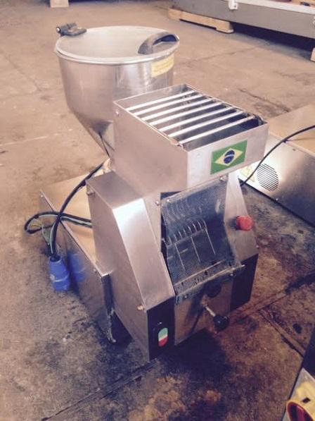 Produtora de nhoque marca Indiana, para aproximadamente 60 Kg/hora. Equipamento destinado à produção de nhoque de batata ou de farinha, fabricado em aço inox. Rosca, caneca de alimentação e outras peças móveis para lavagem e higienização. Duas peças iguais.