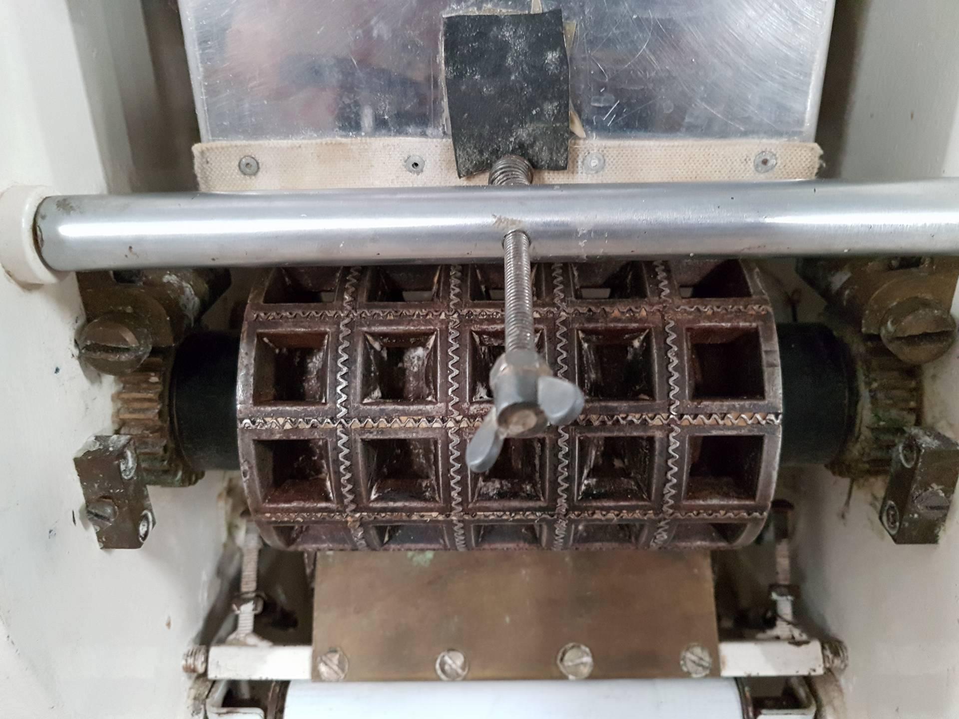 Ravioleteira para 60 kgs Longo e Paniz - Para produzir Ravioli recheado, massa fresca. - Maquina operou durante 5 anos. - Para produzir 60 quilos por hora de massa fresca do tipo ravioli. - Maquina ano 1994, com engrenagens reformadas e parte elétrica, foi refeita a pintura. - Equipamento robusto com alta produtividade. - Parte de corte em aço inox |