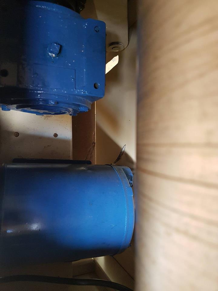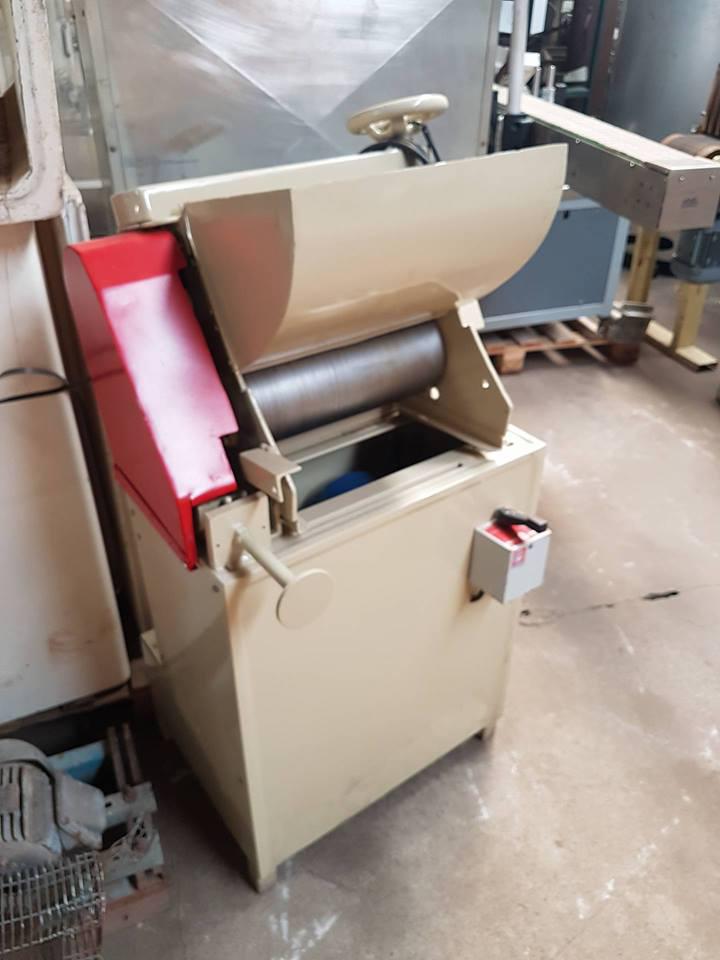 Refinador de 3 rolos (laboratório). O moinho tricilíndrico era utilizado, anteriormente, para refino de recheio e chocolate em escala laboratorial. Cilindros em aço carbono.