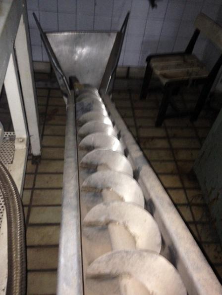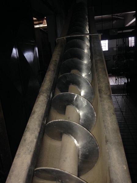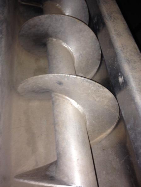 Rosca transportadora em aço inox, com estrutura em aço carbono, com 6 metros de comprimento.