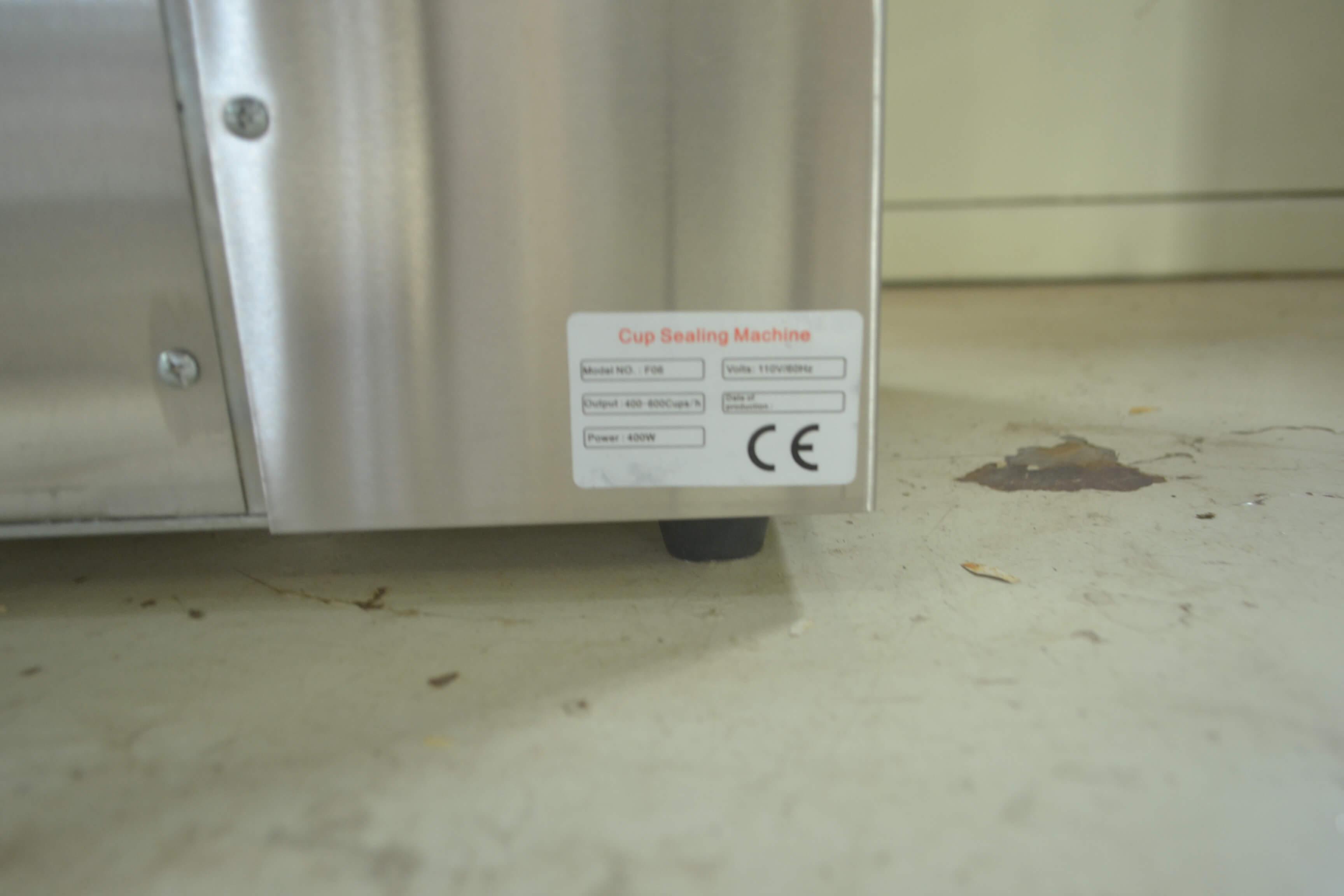 Diâmetro pote: 95 mm. Voltagem: 220 V Monofásico. Marca: Cup Sealer Machine (origem - China)