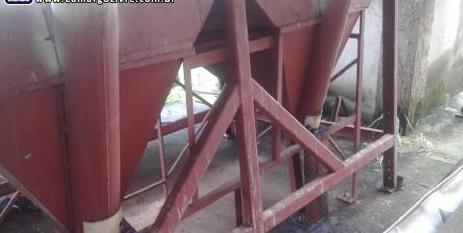 Silo de abastecimento de açúcar 10 ton. Composto de silo recepção com rosca de 6 metros de comprimento por 6 polegadas de diâmetro e rosca de saída de 3 polegadas de diâmetro. Duas unidades.