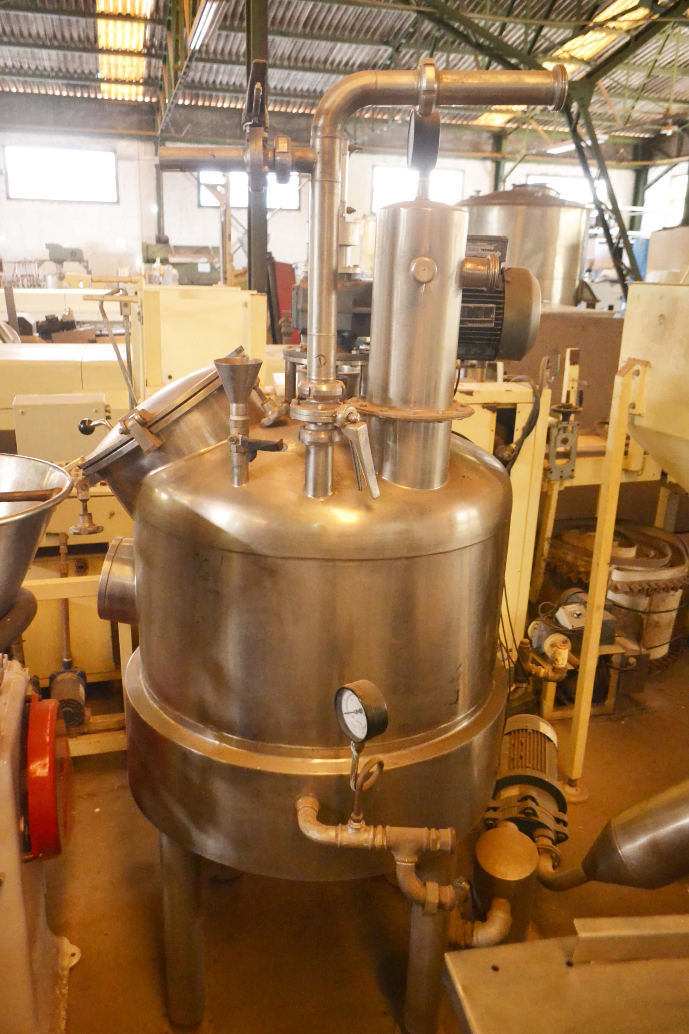 Cozinhador à vácuo em Aço Inox 300 litros marca Rotia Equipamento com meia cana de aquecimento à vapor, com motor e redutor. Possui tampa com pressão de fechamento, filtro e conexões em inox, manômetros, válvula e estrutura de alta resistência de pressão à vácuo.