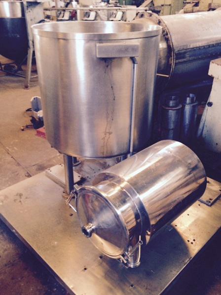 Tacho misturador. Equipamento com bomba de transferência e misturador em aço inox. Extração do produto via rosca.