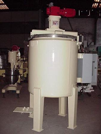 Tanque autônomo para chocolate com capacidade para 800 litros. Banho maria com duas resistências de 2000 watts, moto redutor de 4 hp, parte interna em aço inox inclusive os batedores.