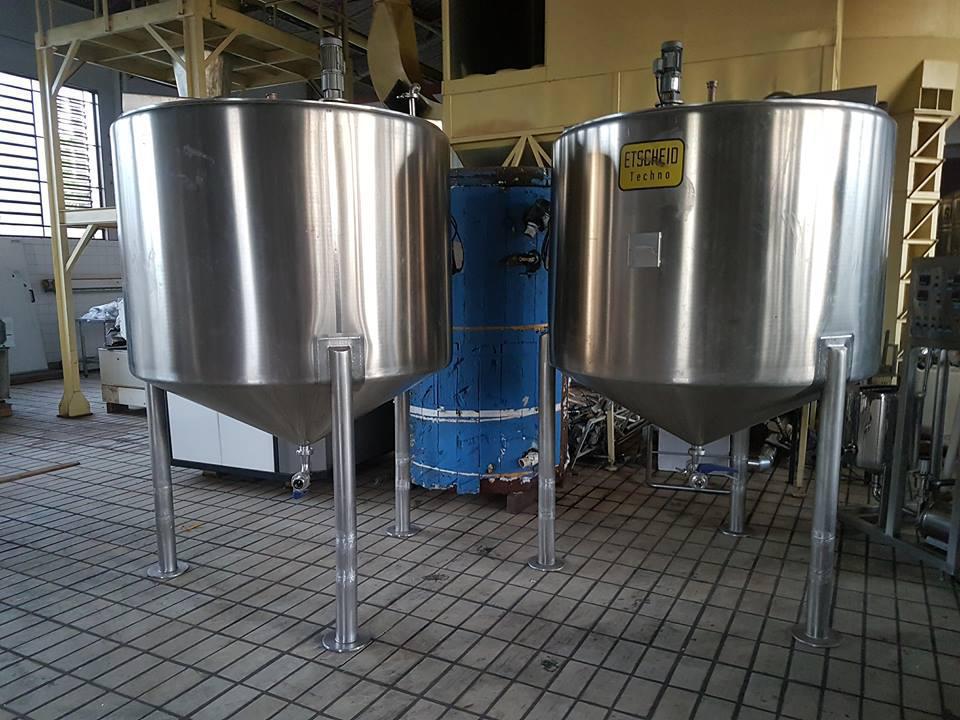 Tanque em aço inox 2 mil litros com misturador. Marca: Etscheidzter Techno. Espessura da chapa: 2 mm. Motor: 1/6 CV. Duas unidades. Seminovos.