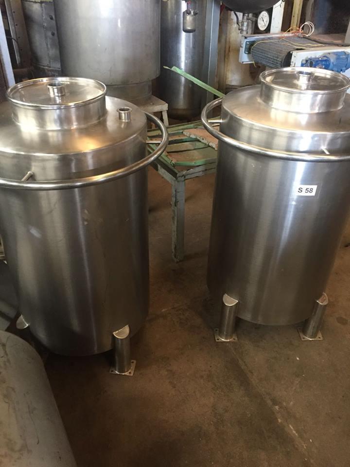 Dois tanques reservatórios em aço inox total com alças para manuseio.