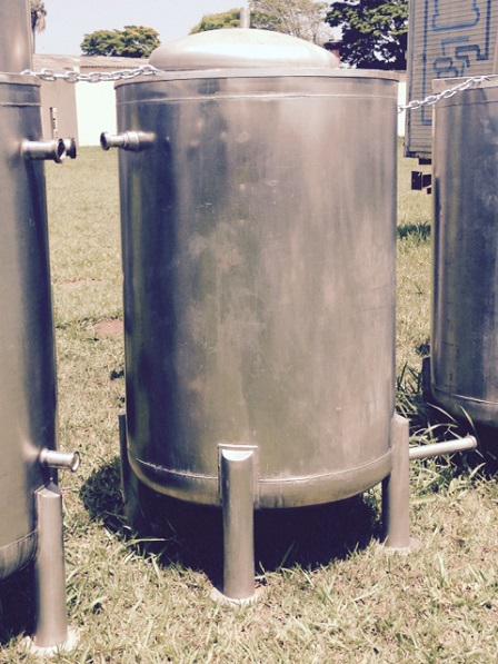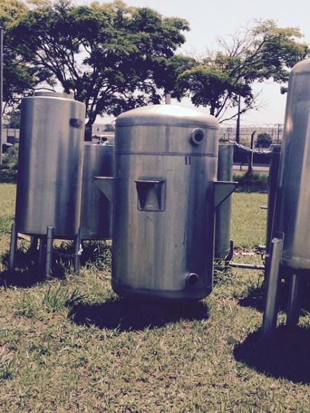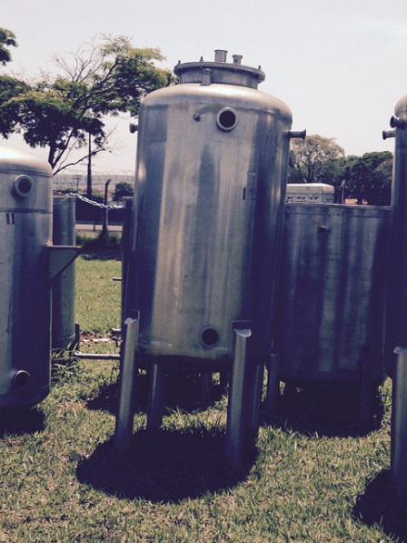 Tanques reservatórios em aço inox com capacidades diversas.