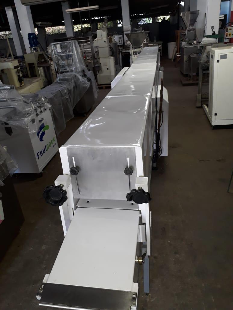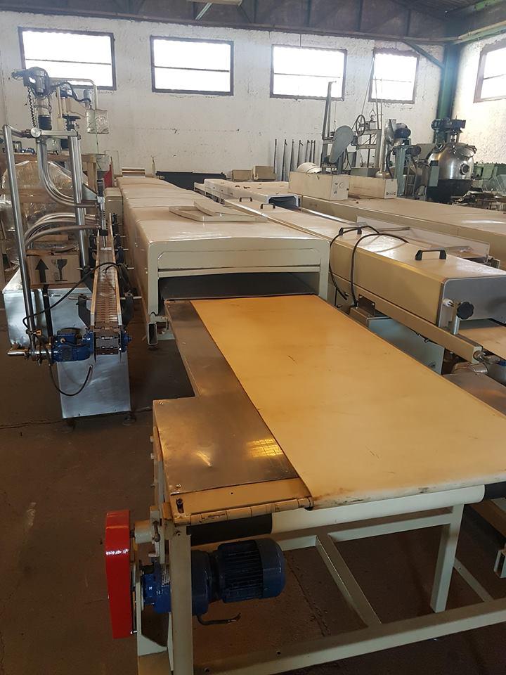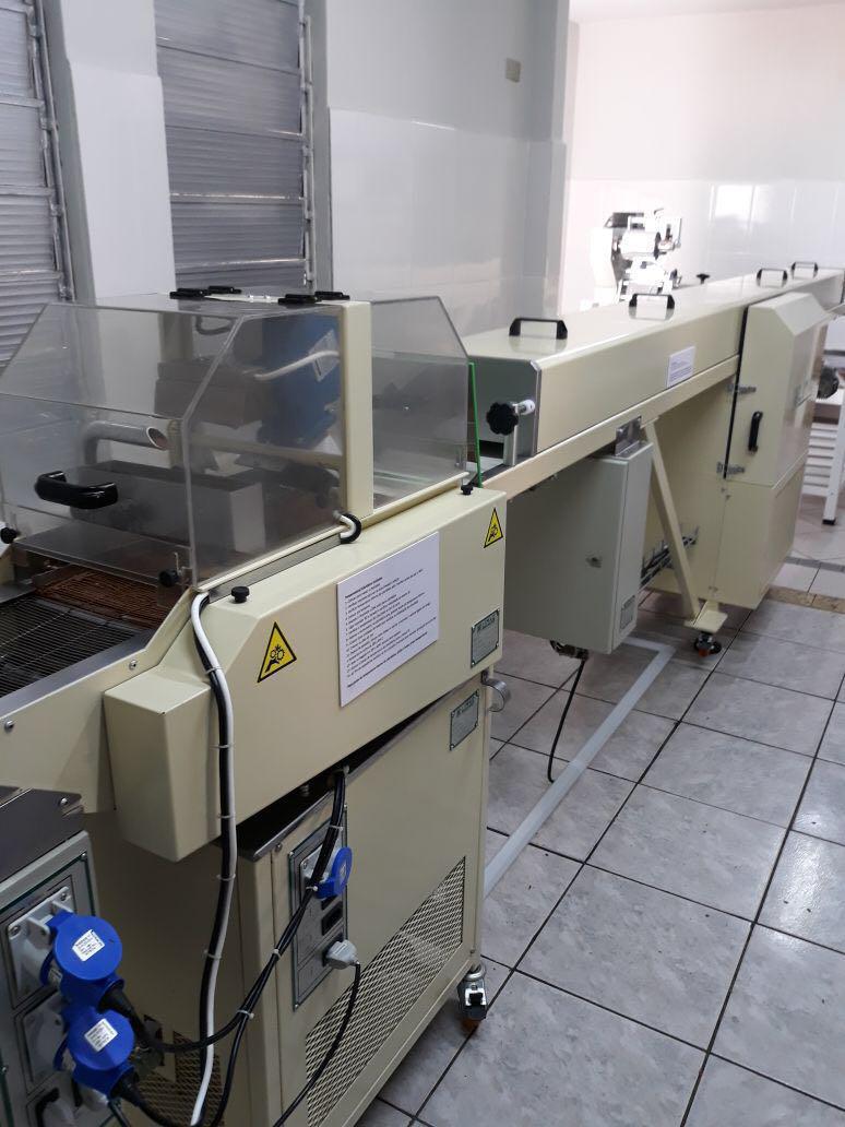 Túnel de resfriamento de chocolates com 7 m, com cobrideira marca Pirog (modelo MC25) de 25 cm largura. Equipamento novo.