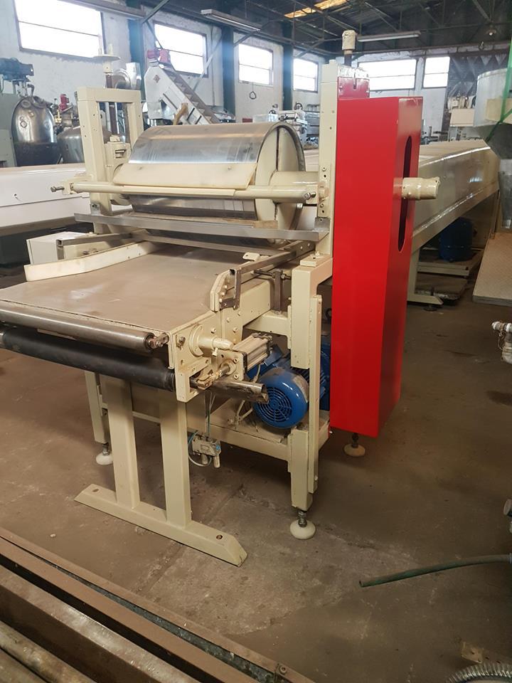 Túnel de resfriamento Hebleimar 22 m x 600 mm. Características: 4 motores gerando 7,2 Kw de potência; controle de temperatura e controle da velocidade da esteira; esteira construída em PVC laminado.